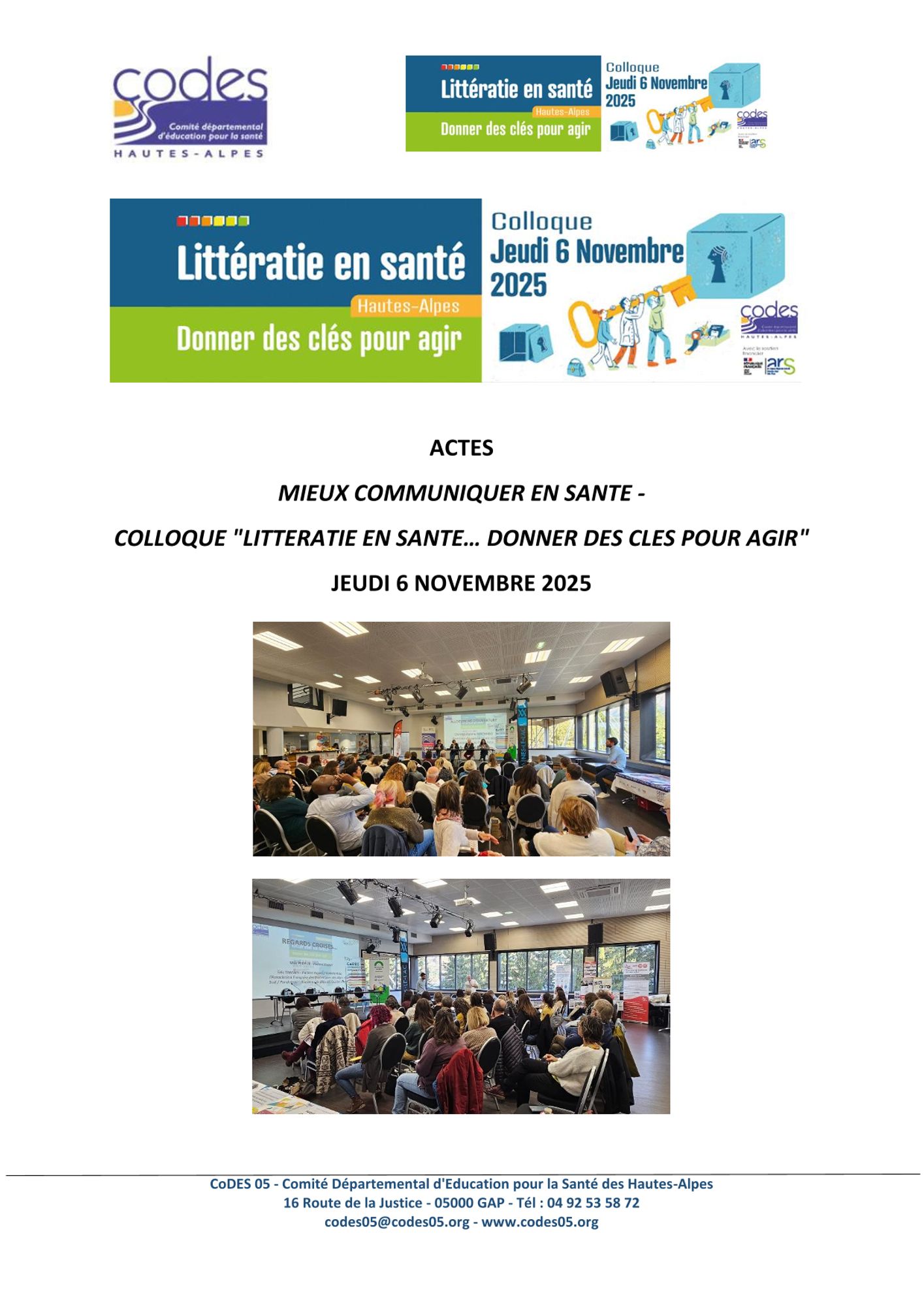 Actes - Colloque "Littératie en santé... Donner des clés pour agir" - Jeudi 6 Novembre 2025