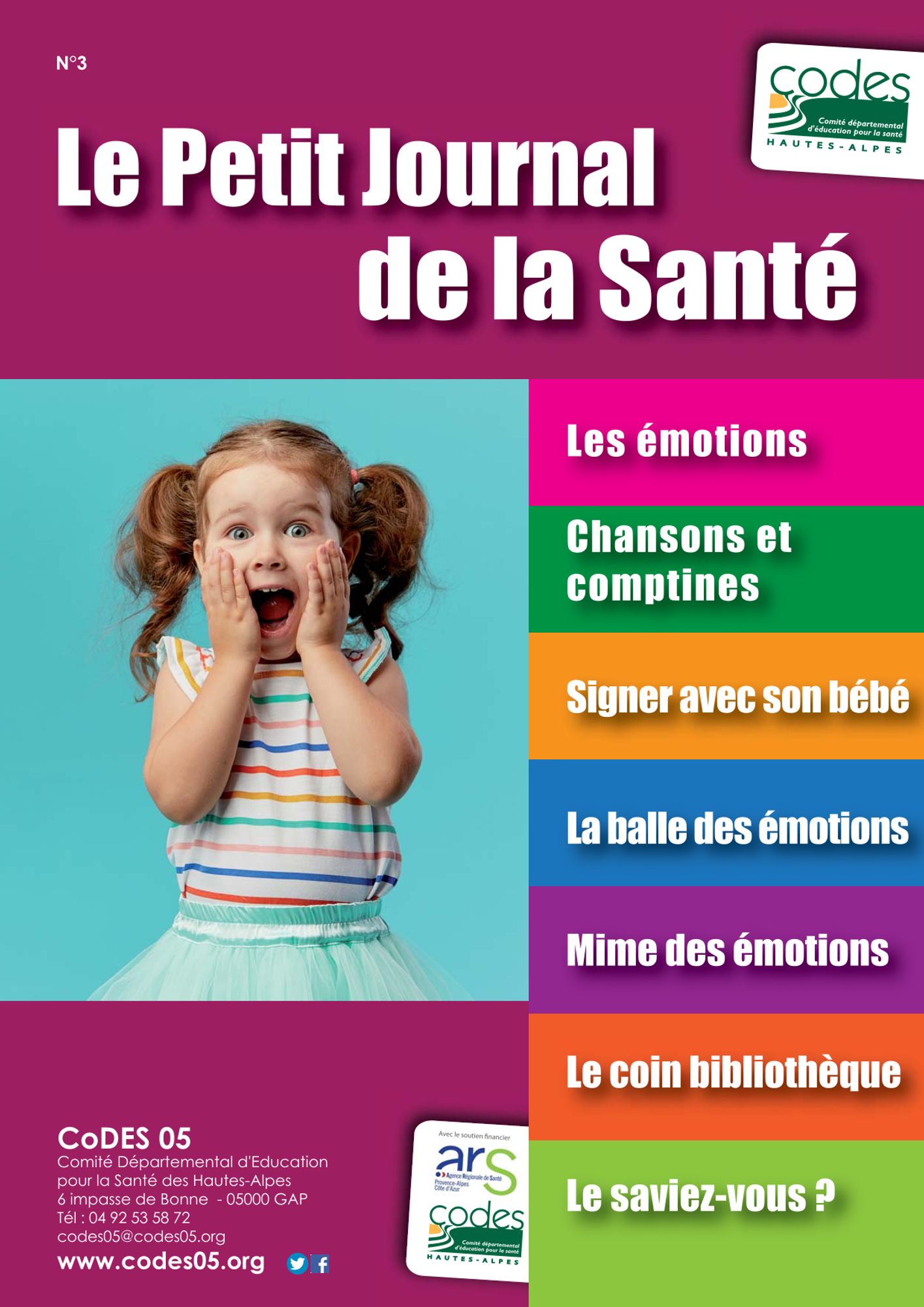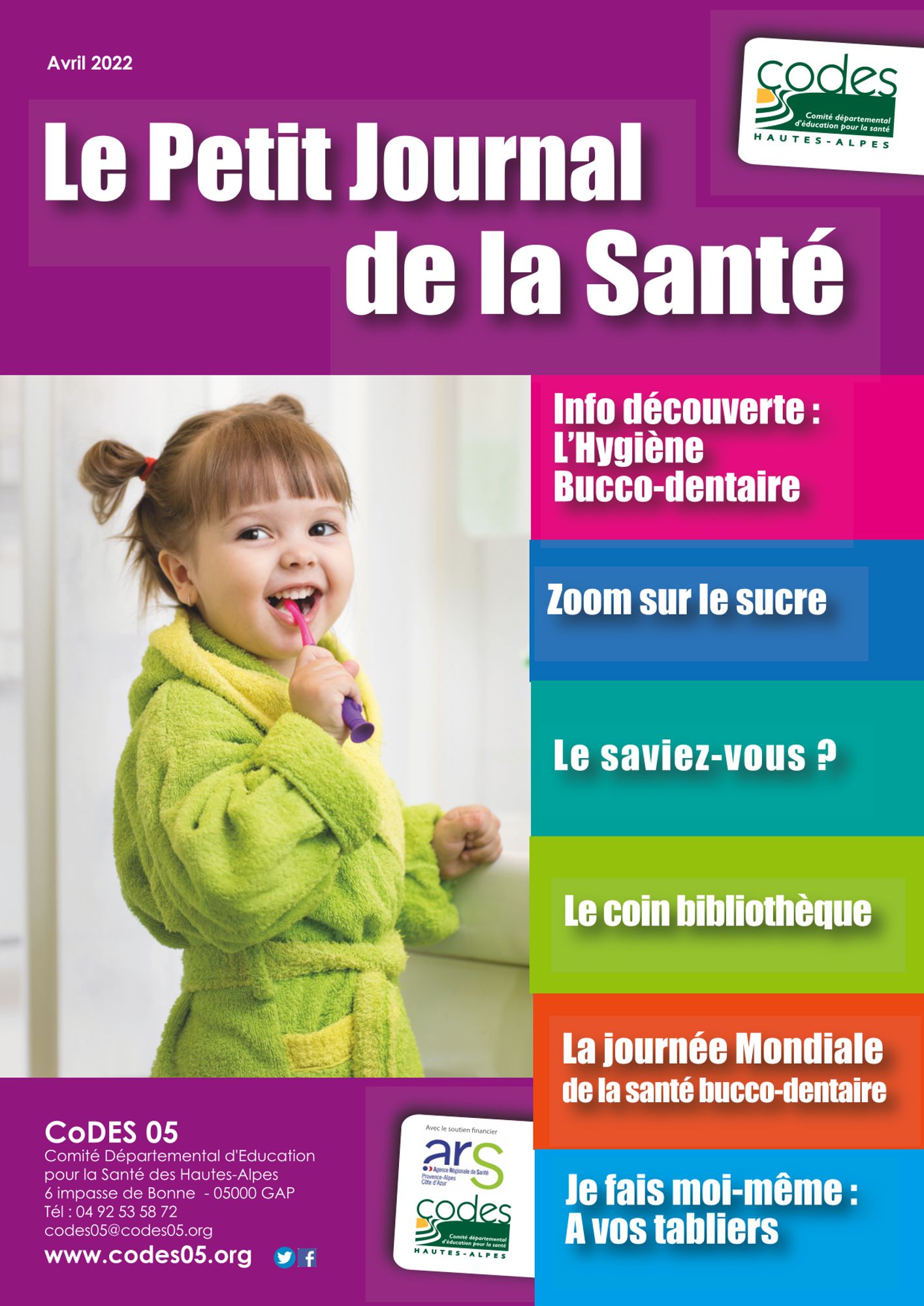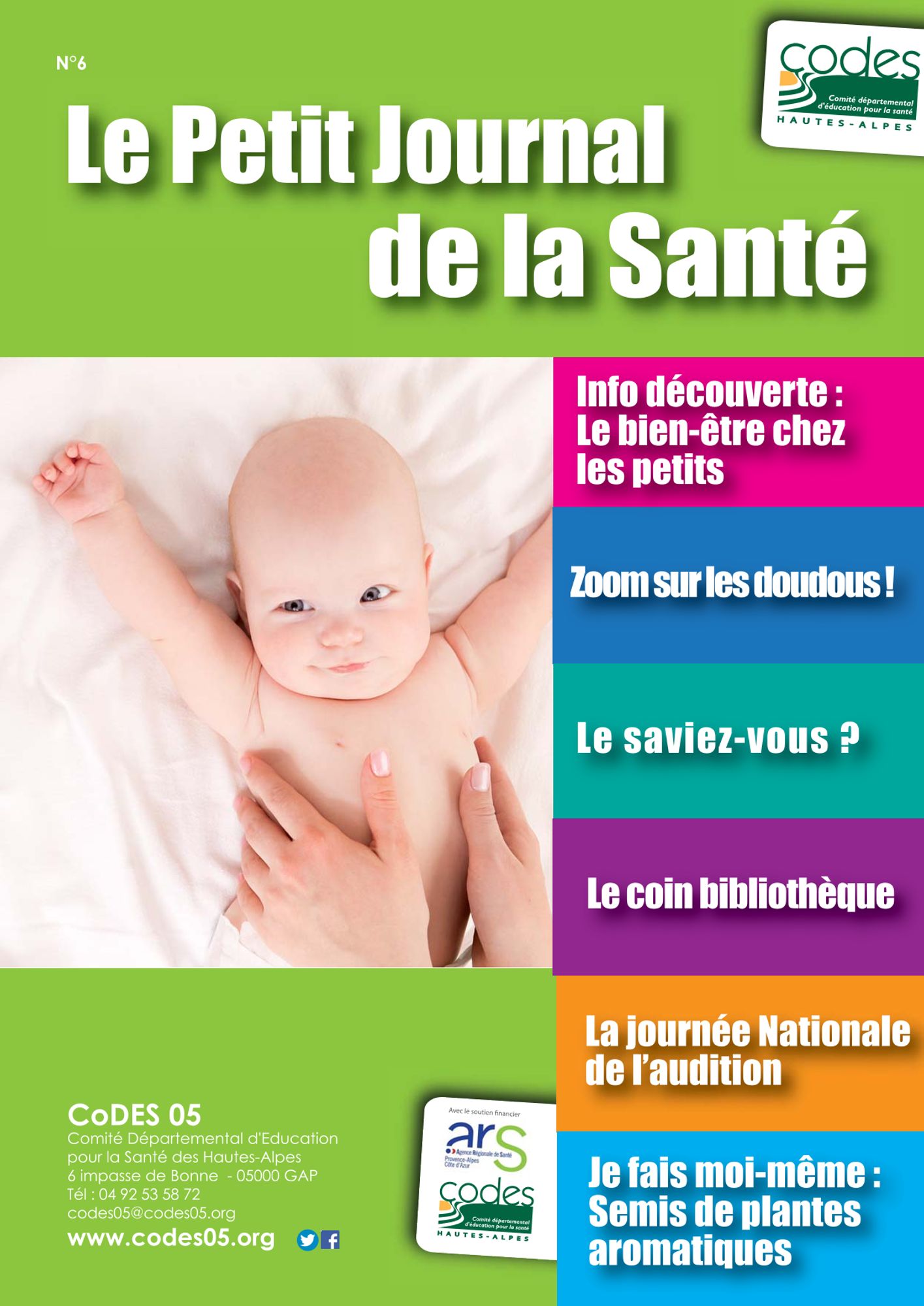 Dans le cadre de ce programme, le CoDES 05 propose aux parents de jeunes enfants par l'intermédiaire des Crèches et des Relais d’Assistantes Maternelles, Le Petit Journal de la Santé.