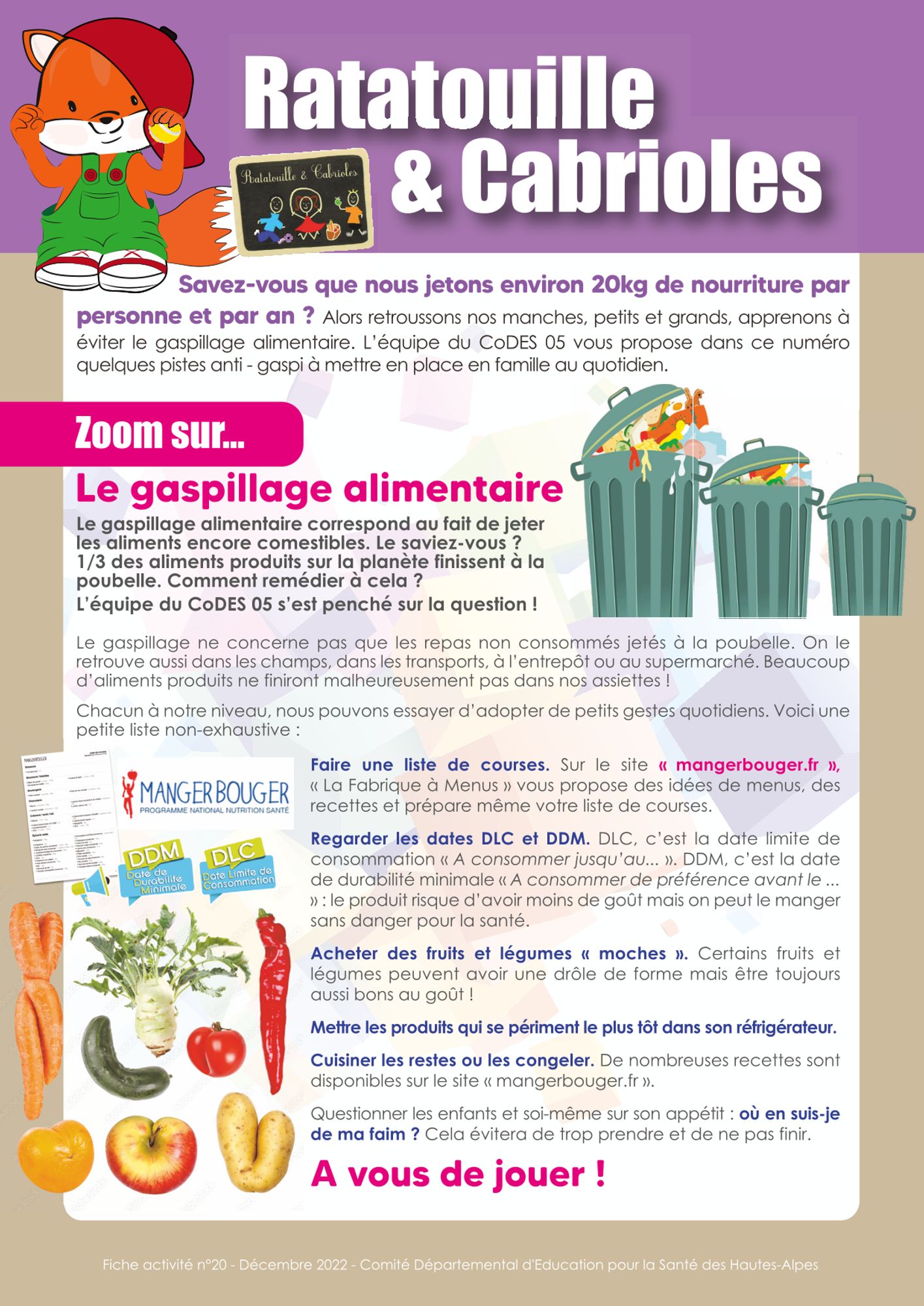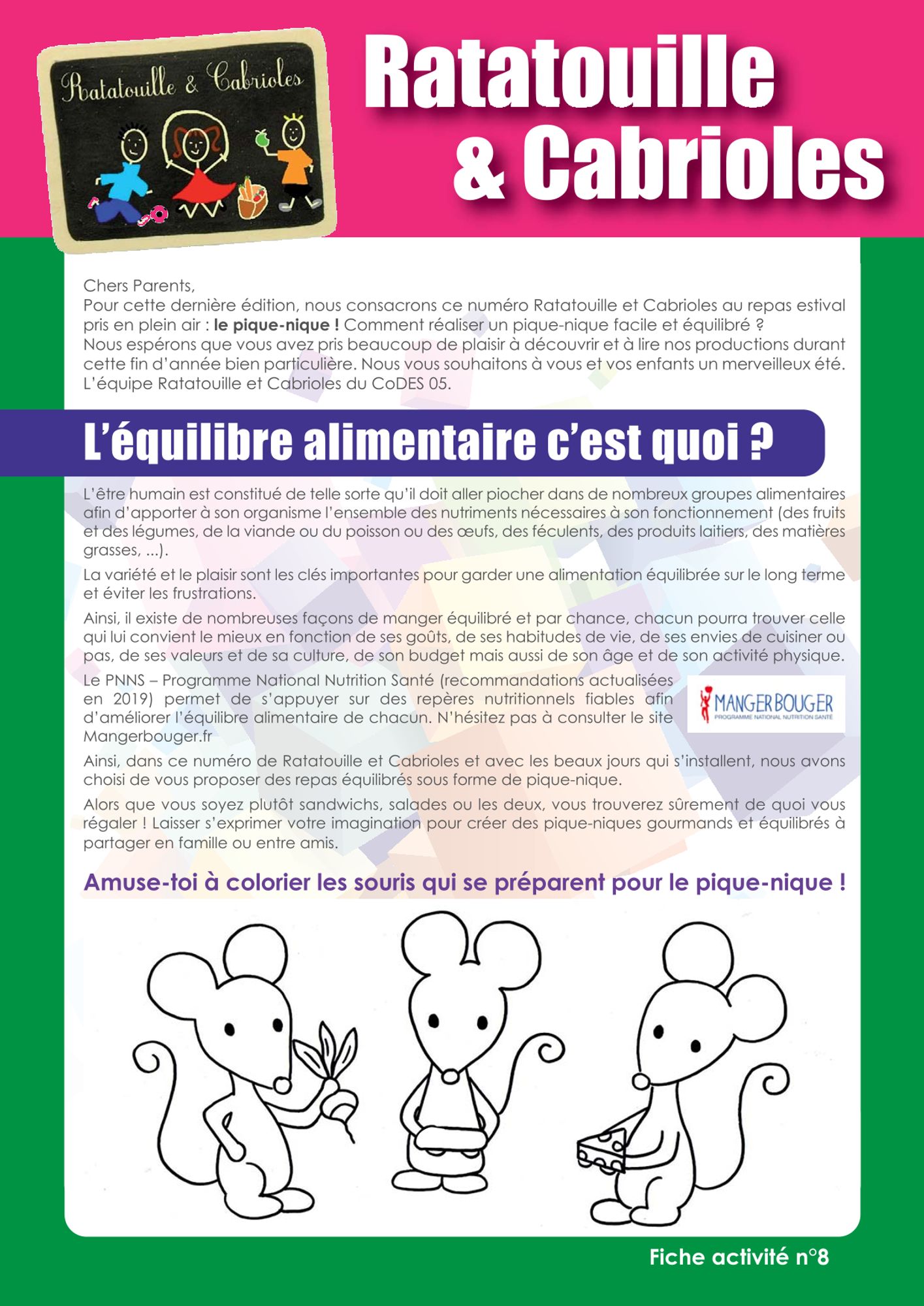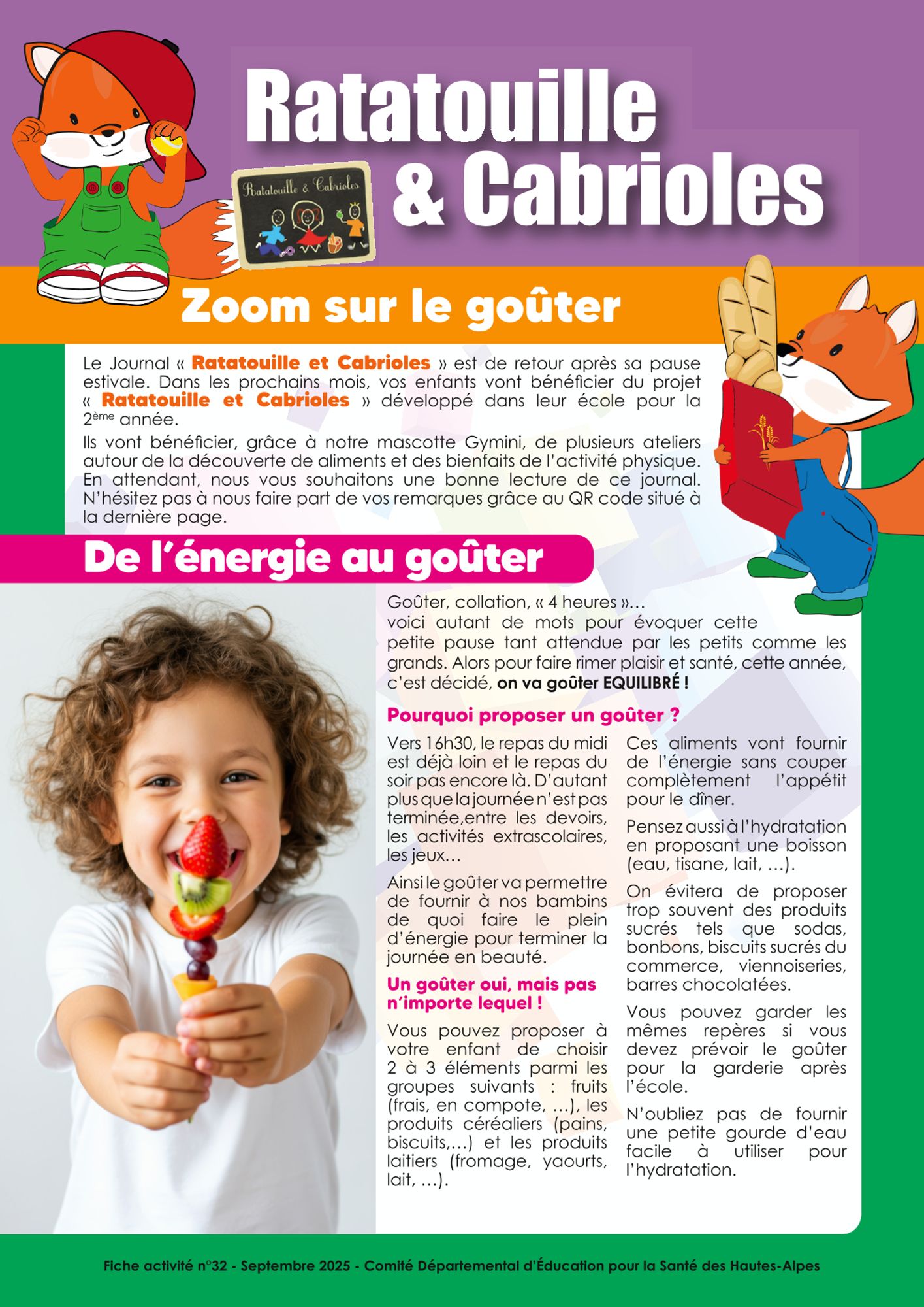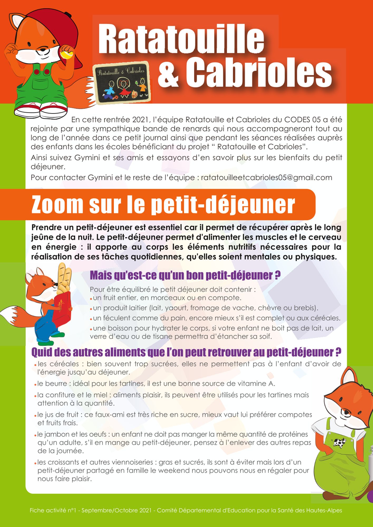 Depuis mars 2020, date du premier confinement, l'équipe du CoDES 05 a proposé un journal ludique sur la nutrition à destination des élèves de maternelle, des parents et des enseignants. Dans chaque numéro, les familles peuvent découvrir un ensemble d'activités en lien avec la nutrition (recettes, défis, comptines, albums jeunesse, idées d’activité physique, …).