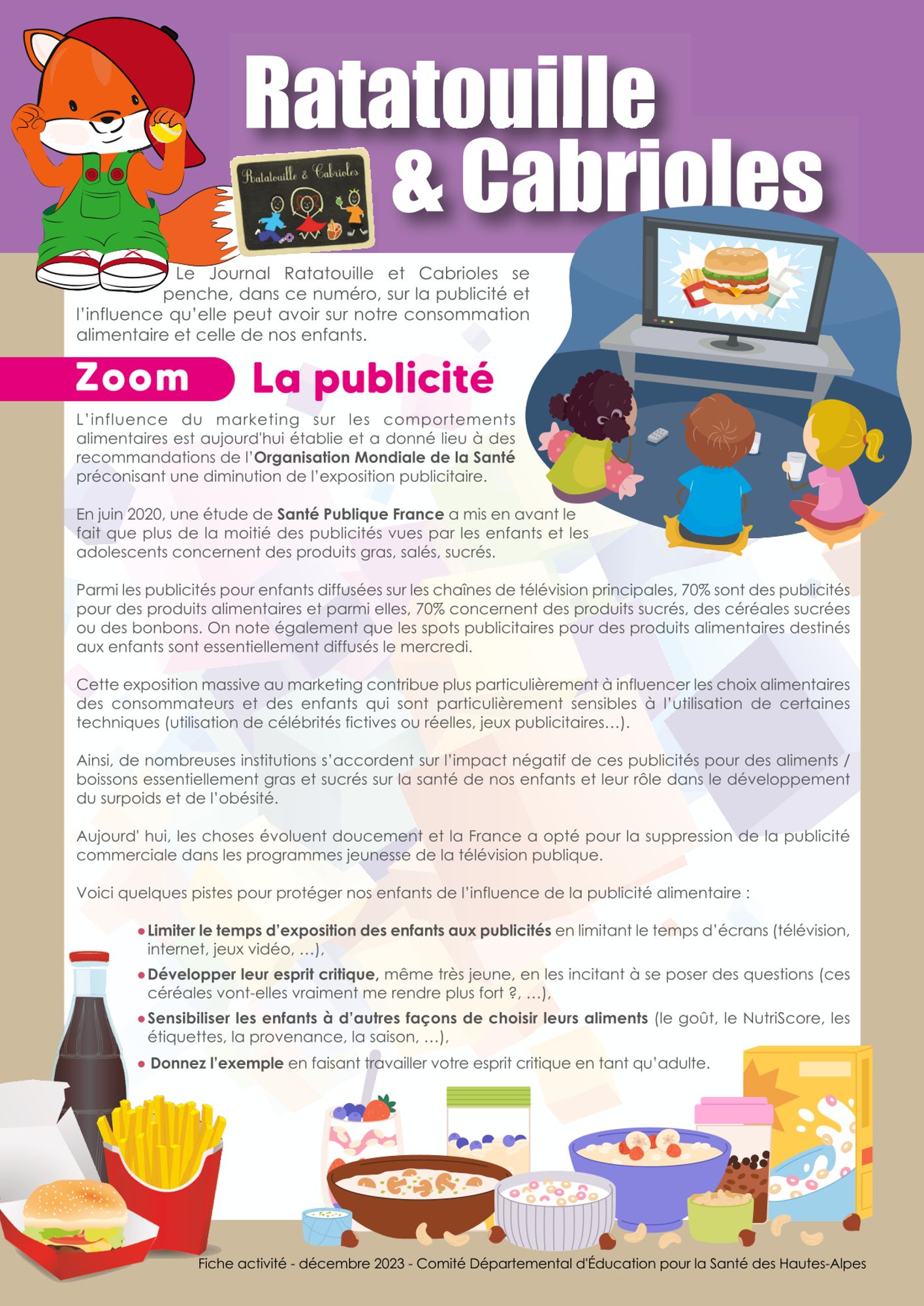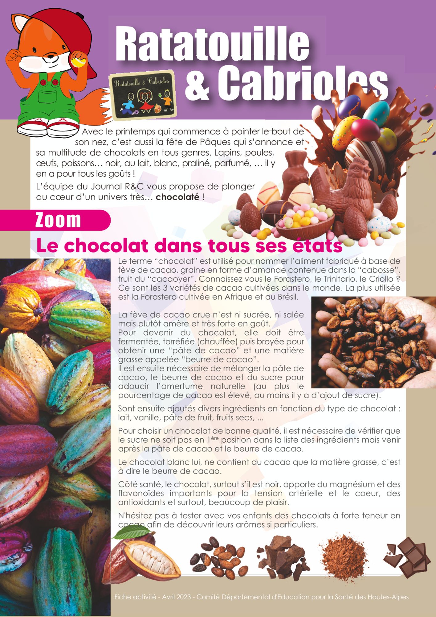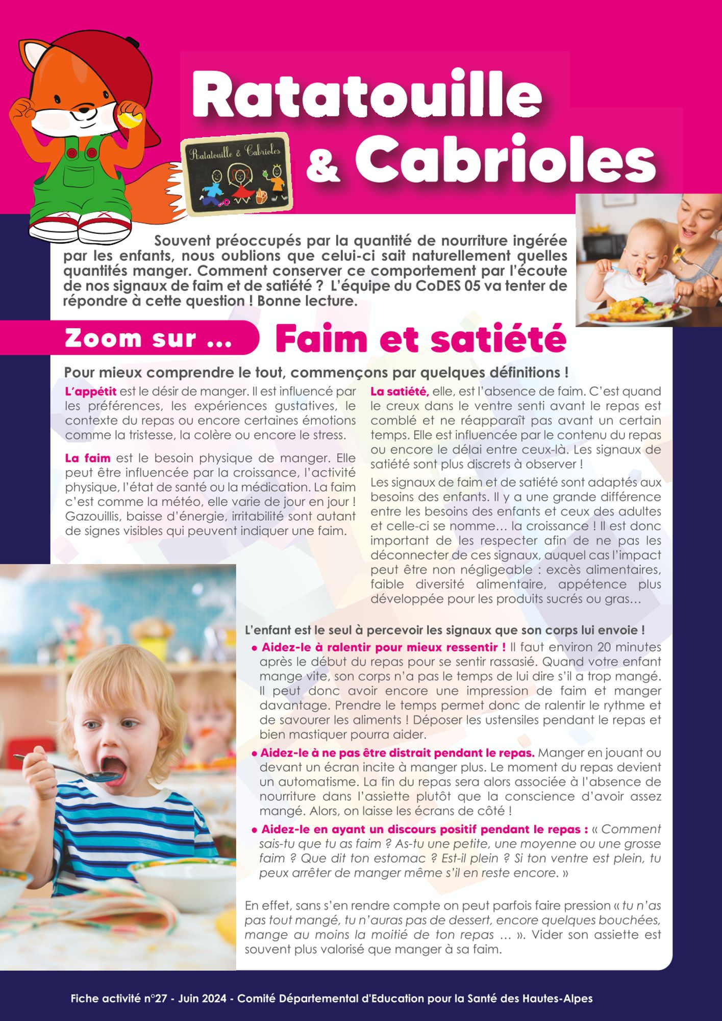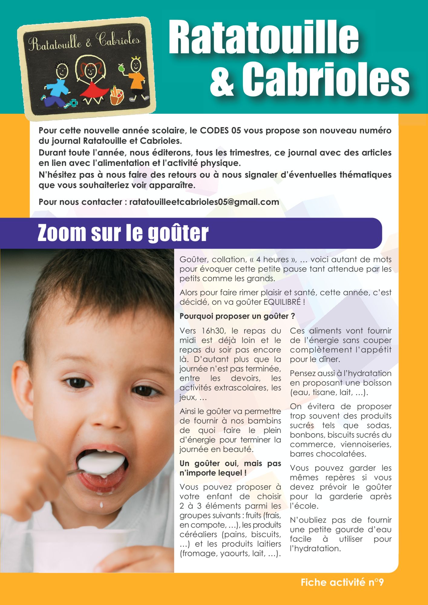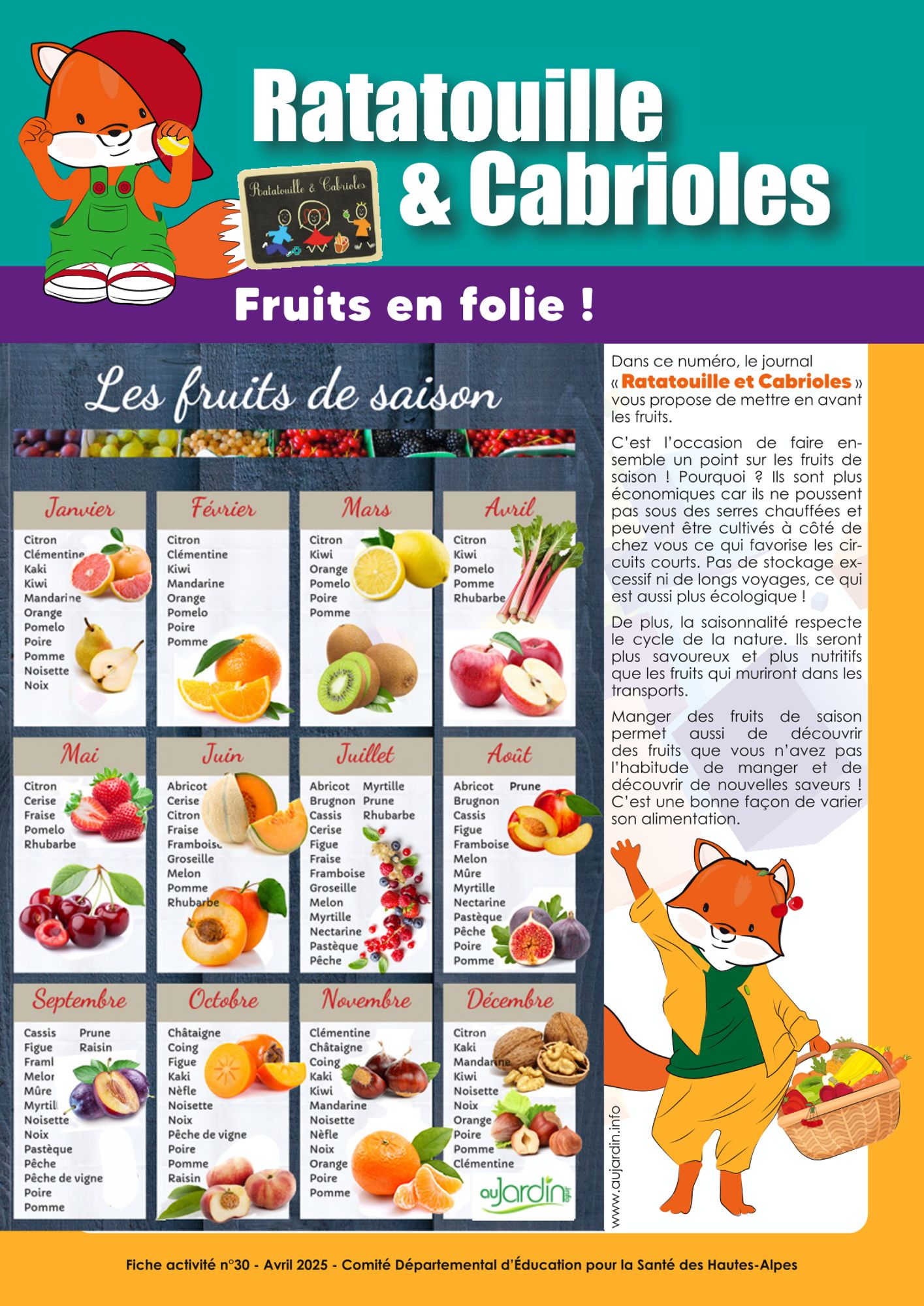 Depuis mars 2020, date du premier confinement, l'équipe du CoDES 05 a proposé un journal ludique sur la nutrition à destination des élèves de maternelle, des parents et des enseignants. Dans chaque numéro, les familles peuvent découvrir un ensemble d'activités en lien avec la nutrition (recettes, défis, comptines, albums jeunesse, idées d’activité physique, …).