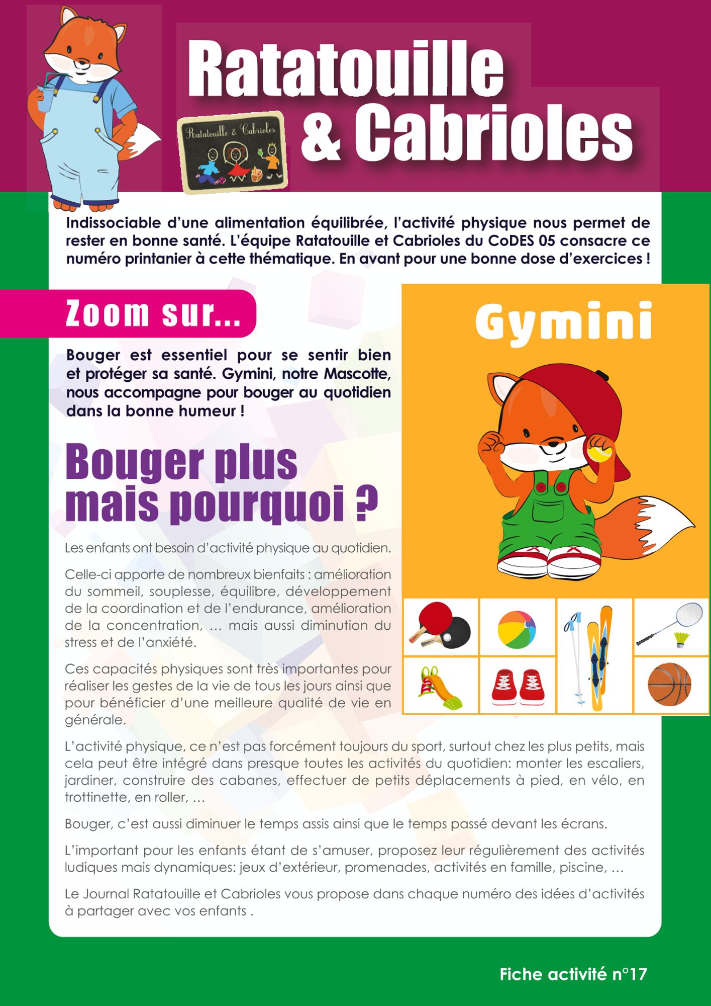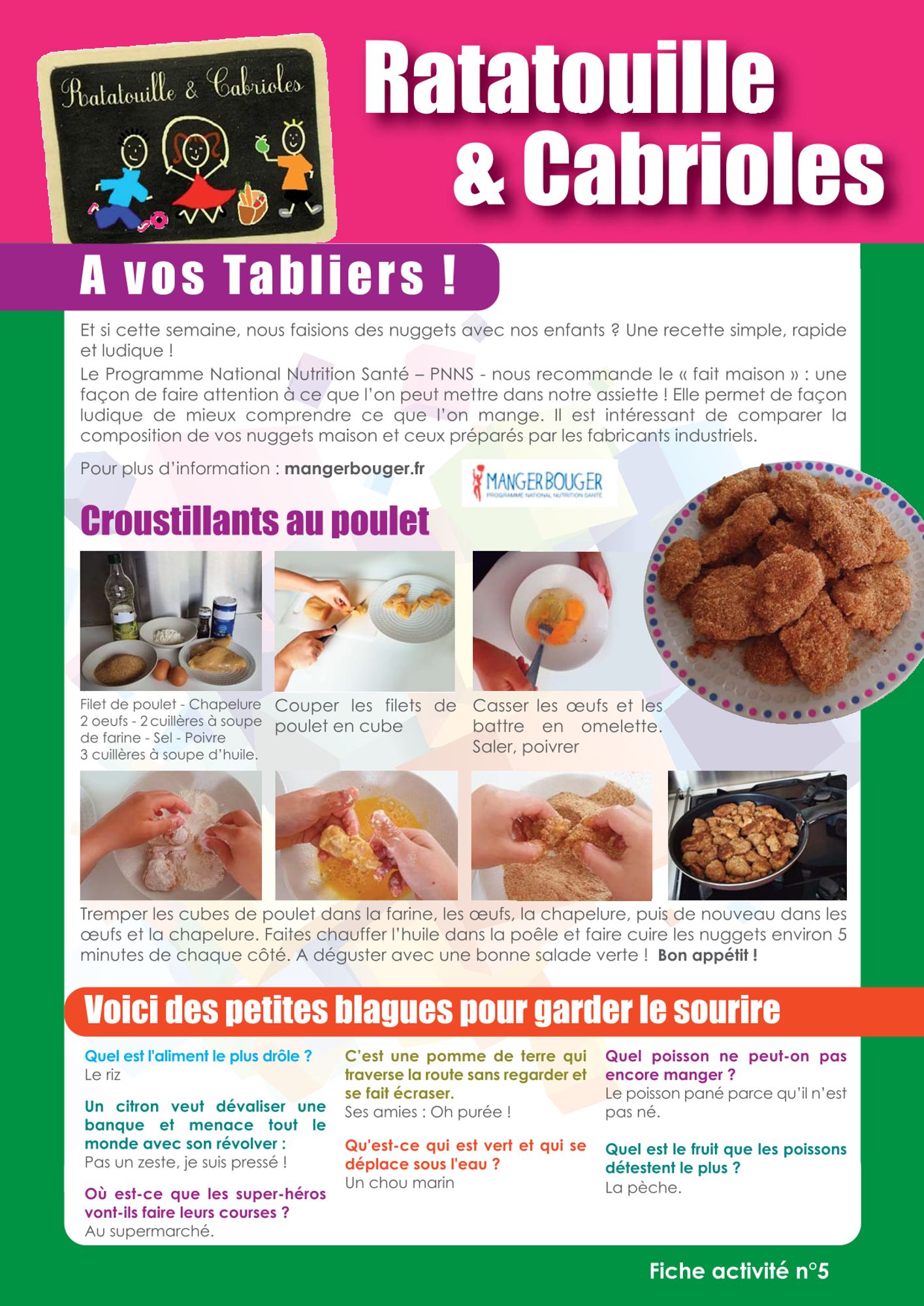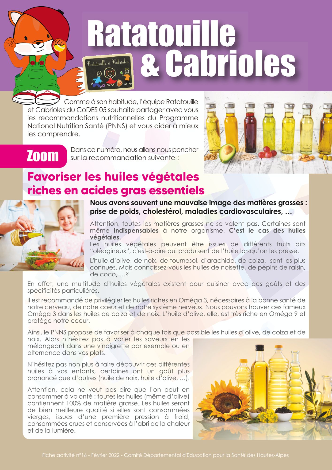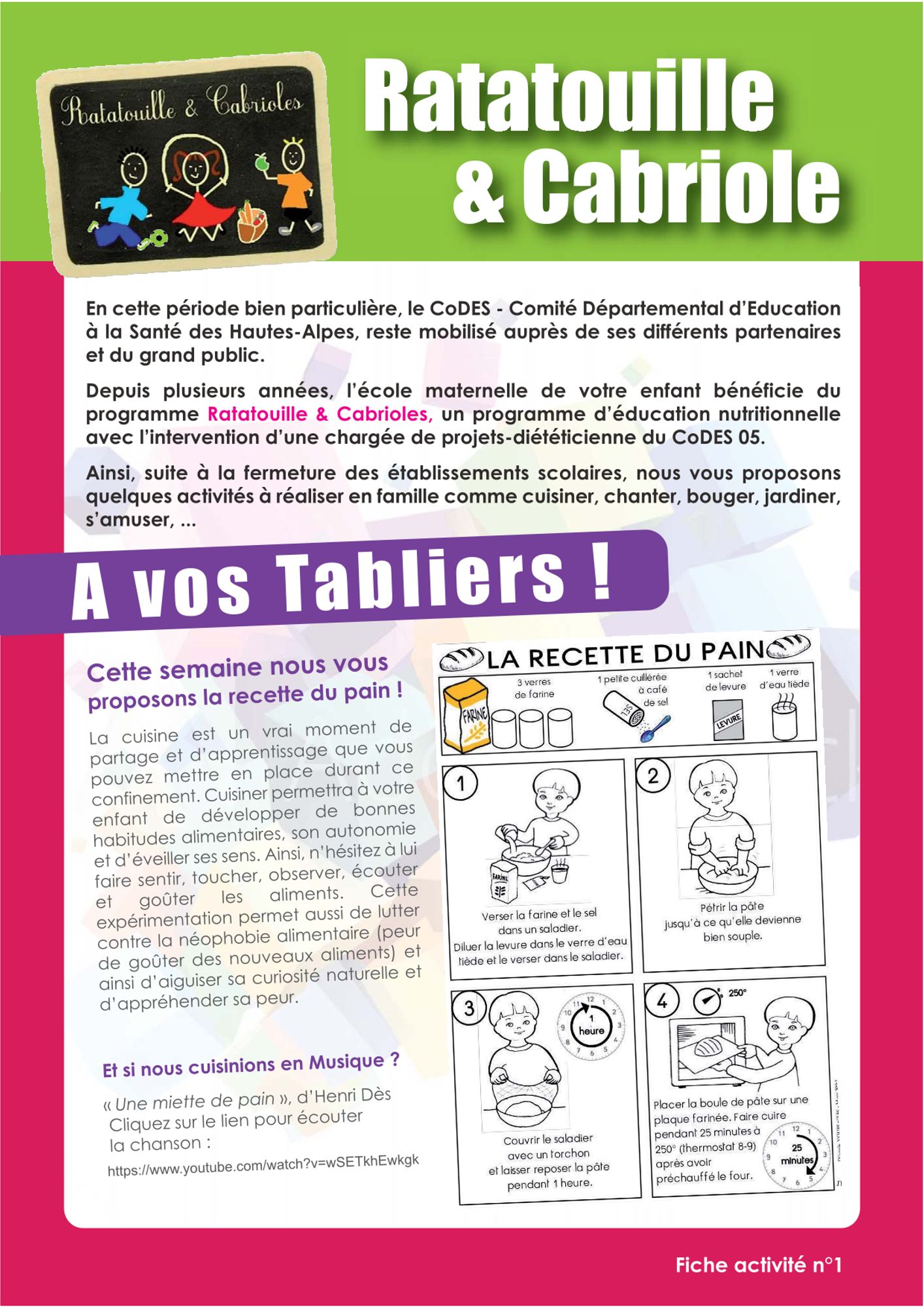 Depuis mars 2020, date du premier confinement, l'équipe du CoDES 05 a proposé un journal ludique sur la nutrition à destination des élèves de maternelle, des parents et des enseignants. Dans chaque numéro, les familles peuvent découvrir un ensemble d'activités en lien avec la nutrition (recettes, défis, comptines, albums jeunesse, idées d’activité physique, …).