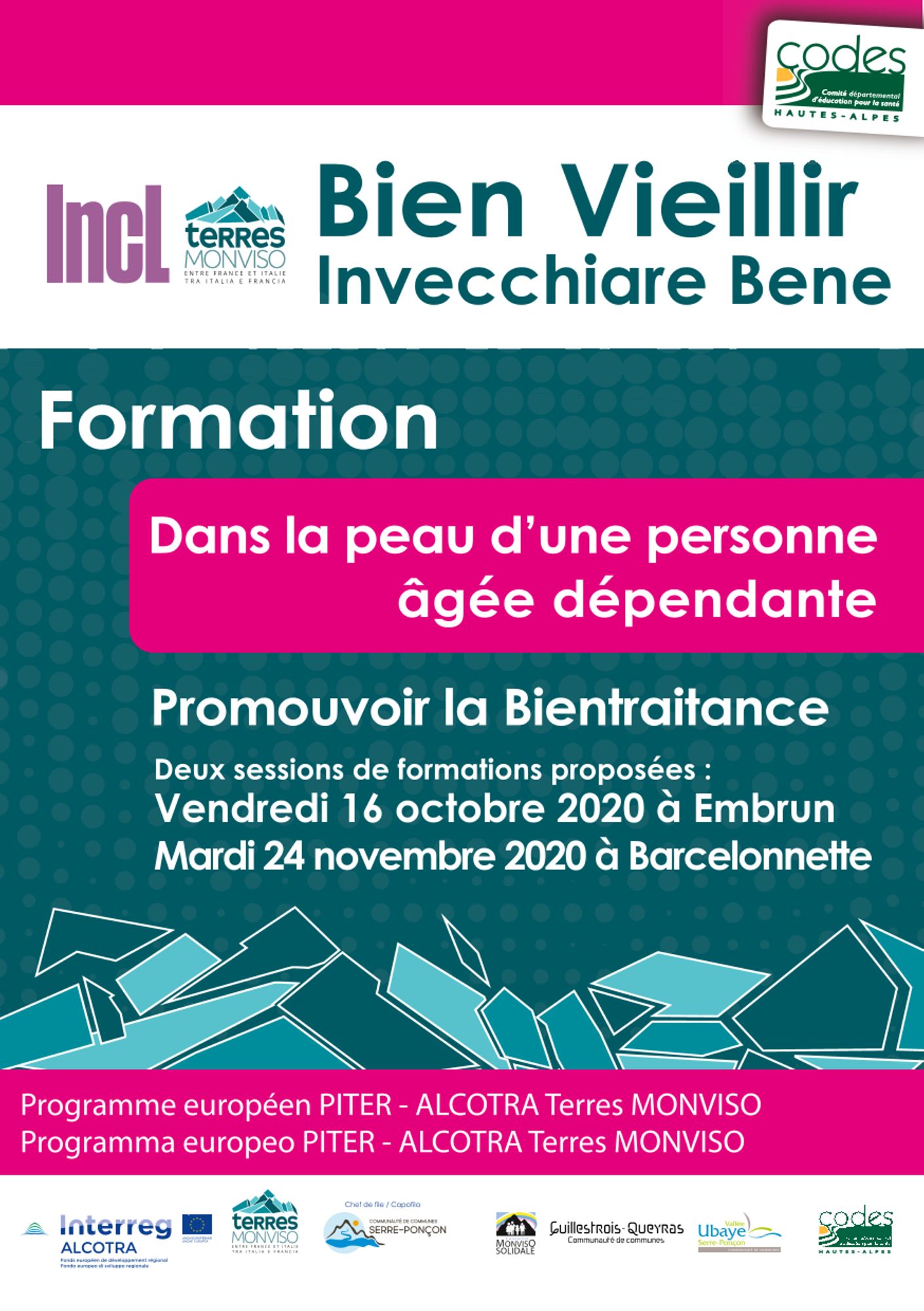 Le Comité Départemental d’Education pour la Santé des Hautes-Alpes (CODES 05) en partenariat avec les communautés de communes de Serre-Ponçon, du Guillestrois-Queyras et de la Vallée de l'Ubaye Serre-Ponçon, propose de financer des actions de formation pour des professionnels et des bénévoles, intervenant auprès de personnes âgées sur le territoire français des Terres Monviso.