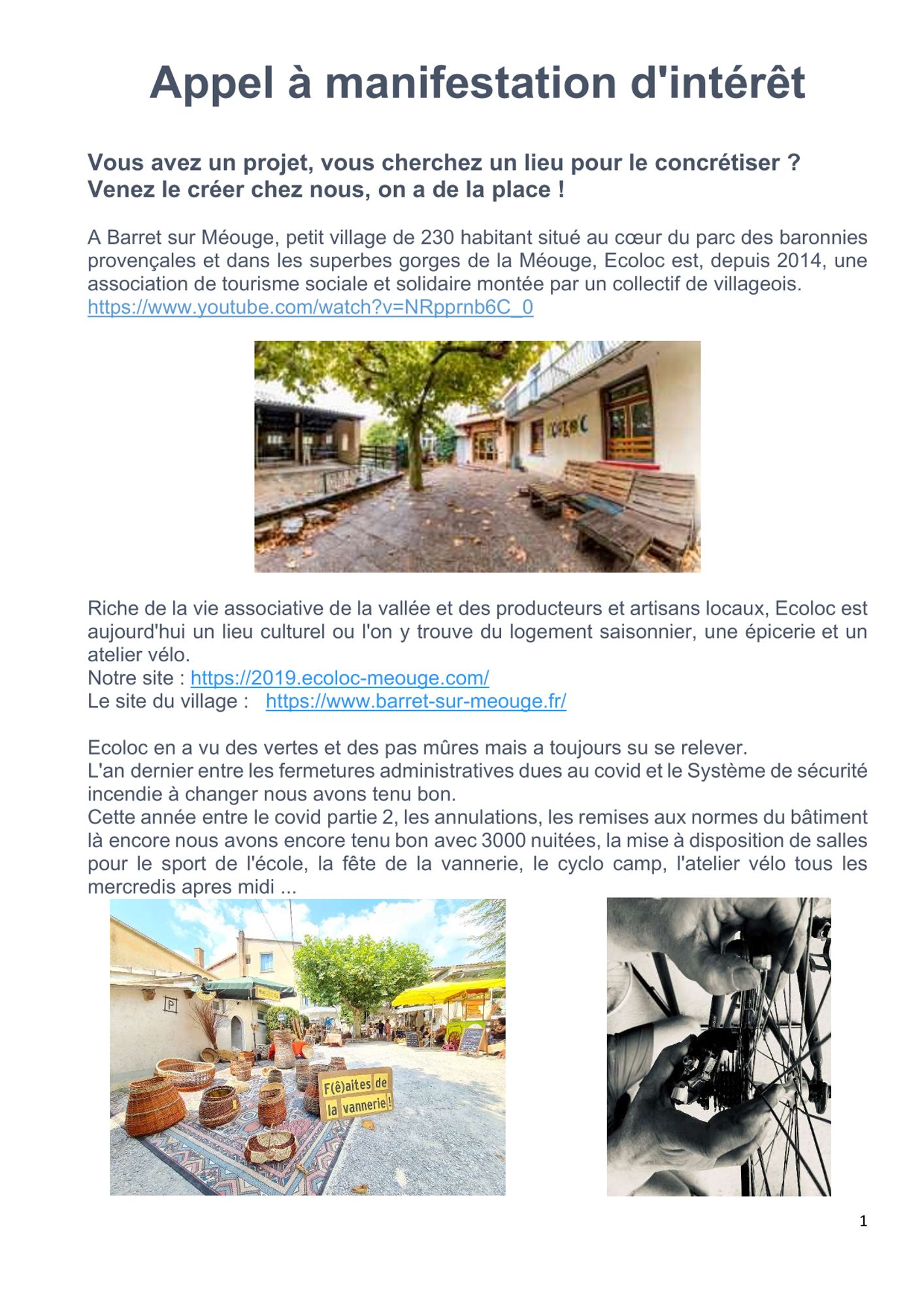 Ecoloc est, depuis 2014, une association de tourisme sociale et solidaire montée par un collectif de villageois basée à Barret-sur-Méouge.