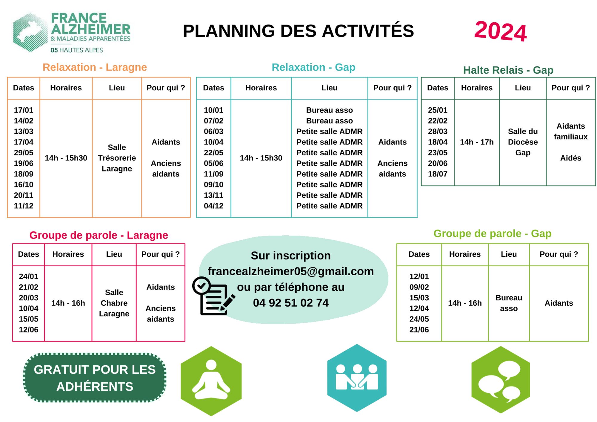 Retrouvez la programmation des activités de France Alzheimer 05.