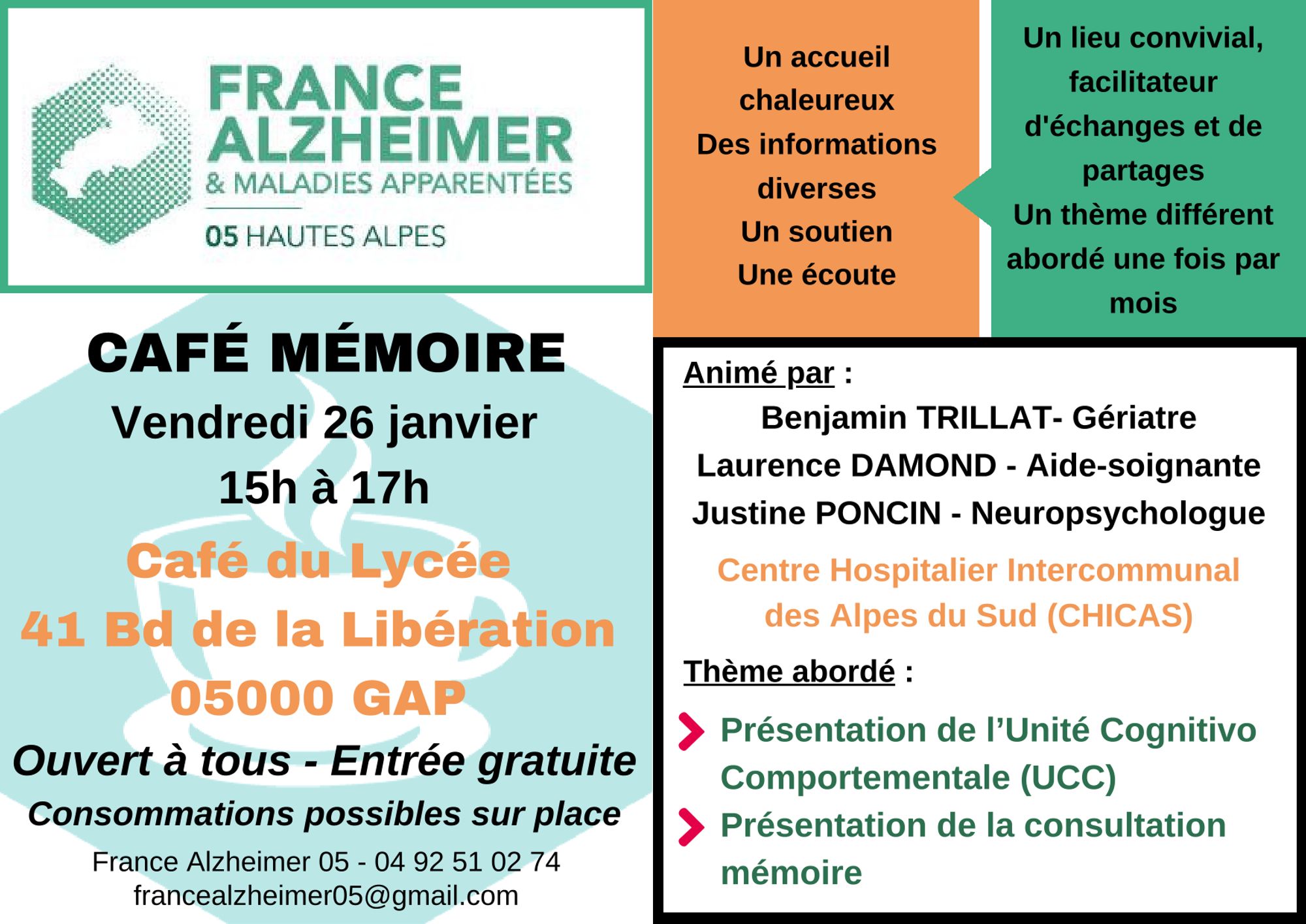 Le prochain café mémoire aura lieu le vendredi 23 février, de 15h à 17h au café de lycée à Gap.