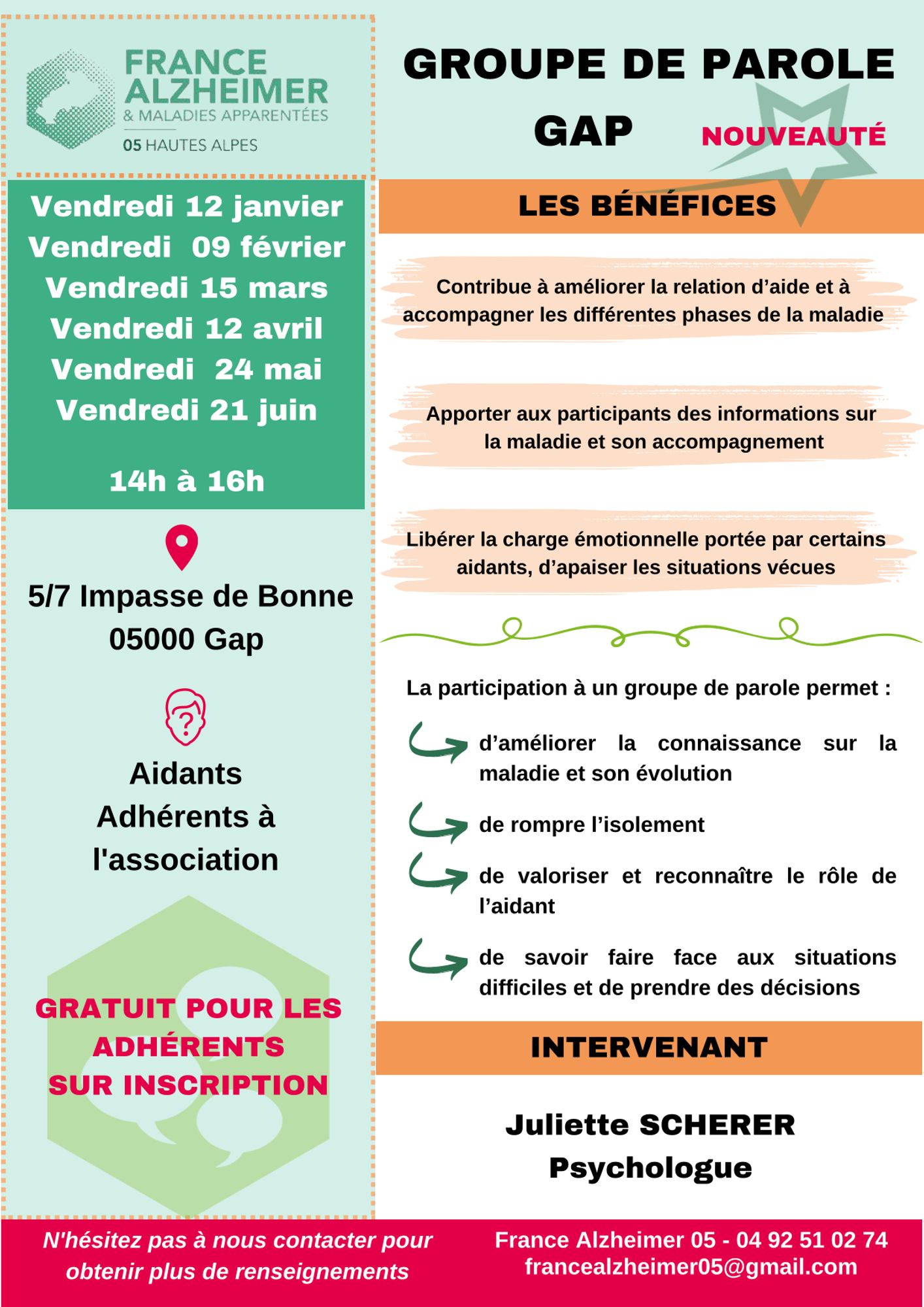 Dès janvier 2024, un nouveau groupe de parole à destination des aidants est mis en place à Gap.
