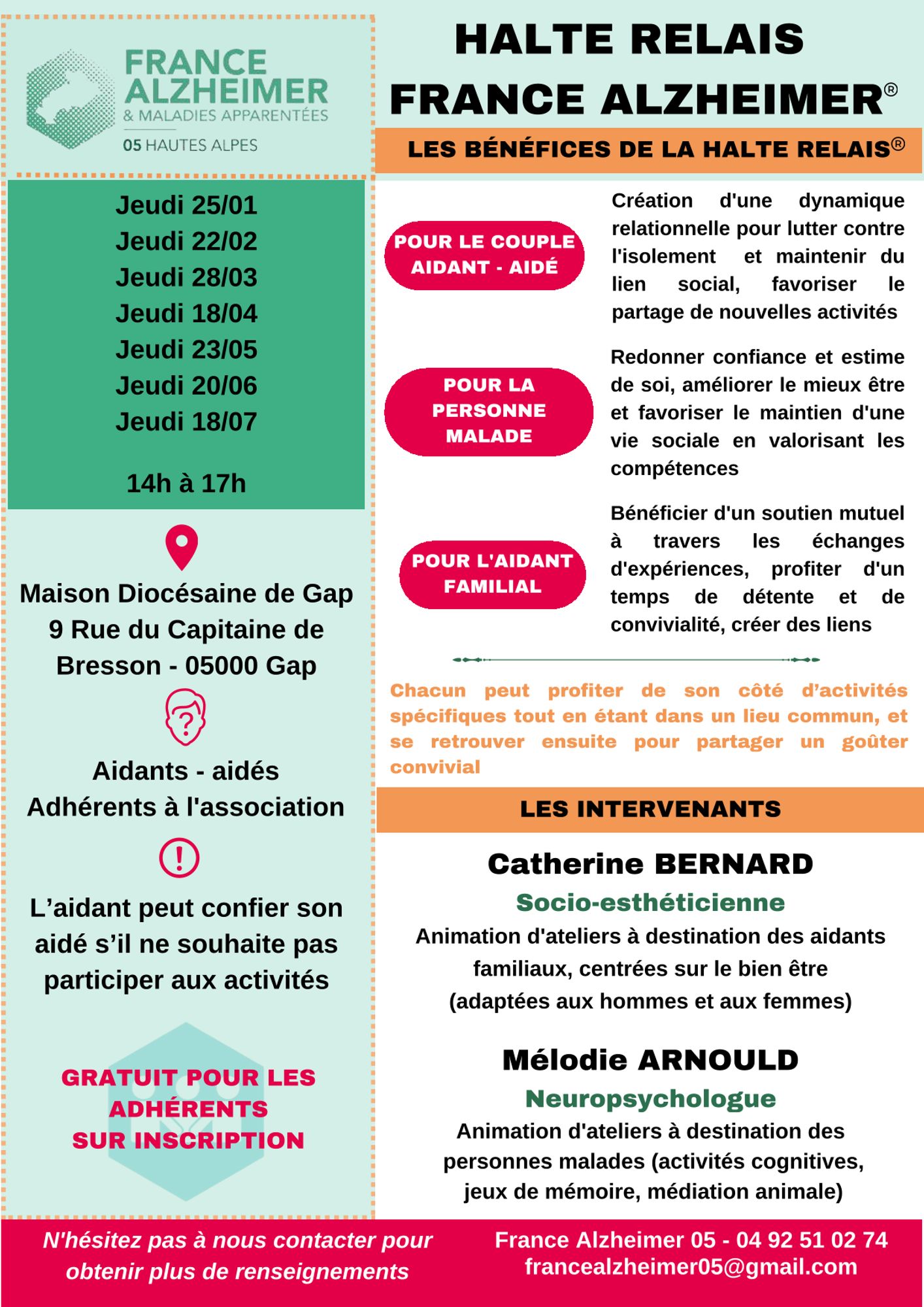 Des cafés mémoire, relaxation et des haltes relais sont également proposés.