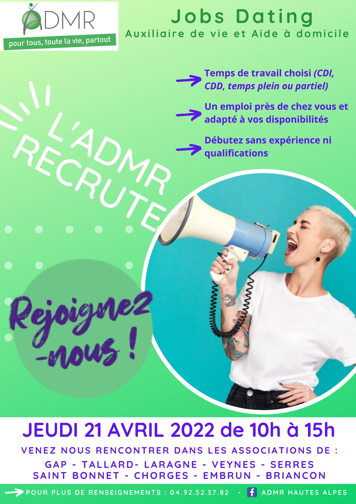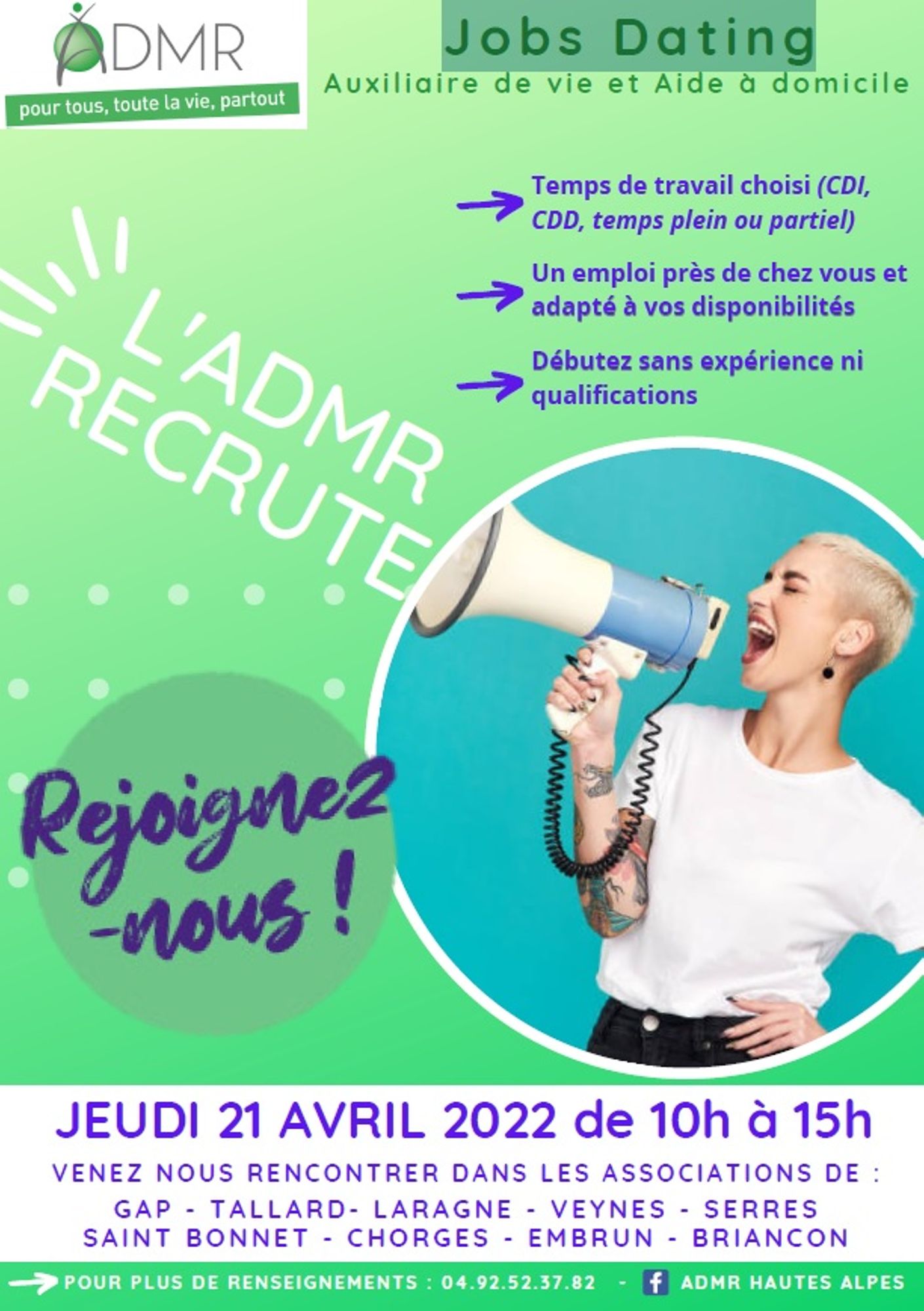 L'ADMR recrute sur l'ensemble du département.