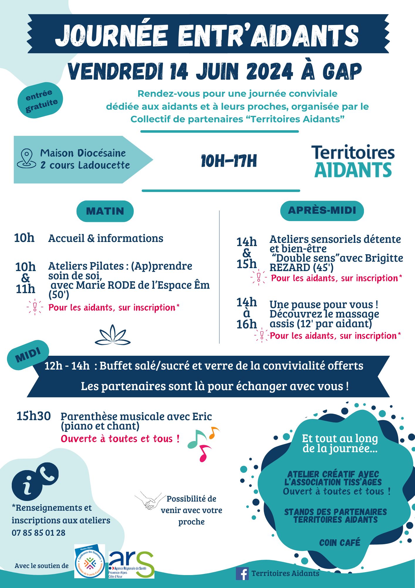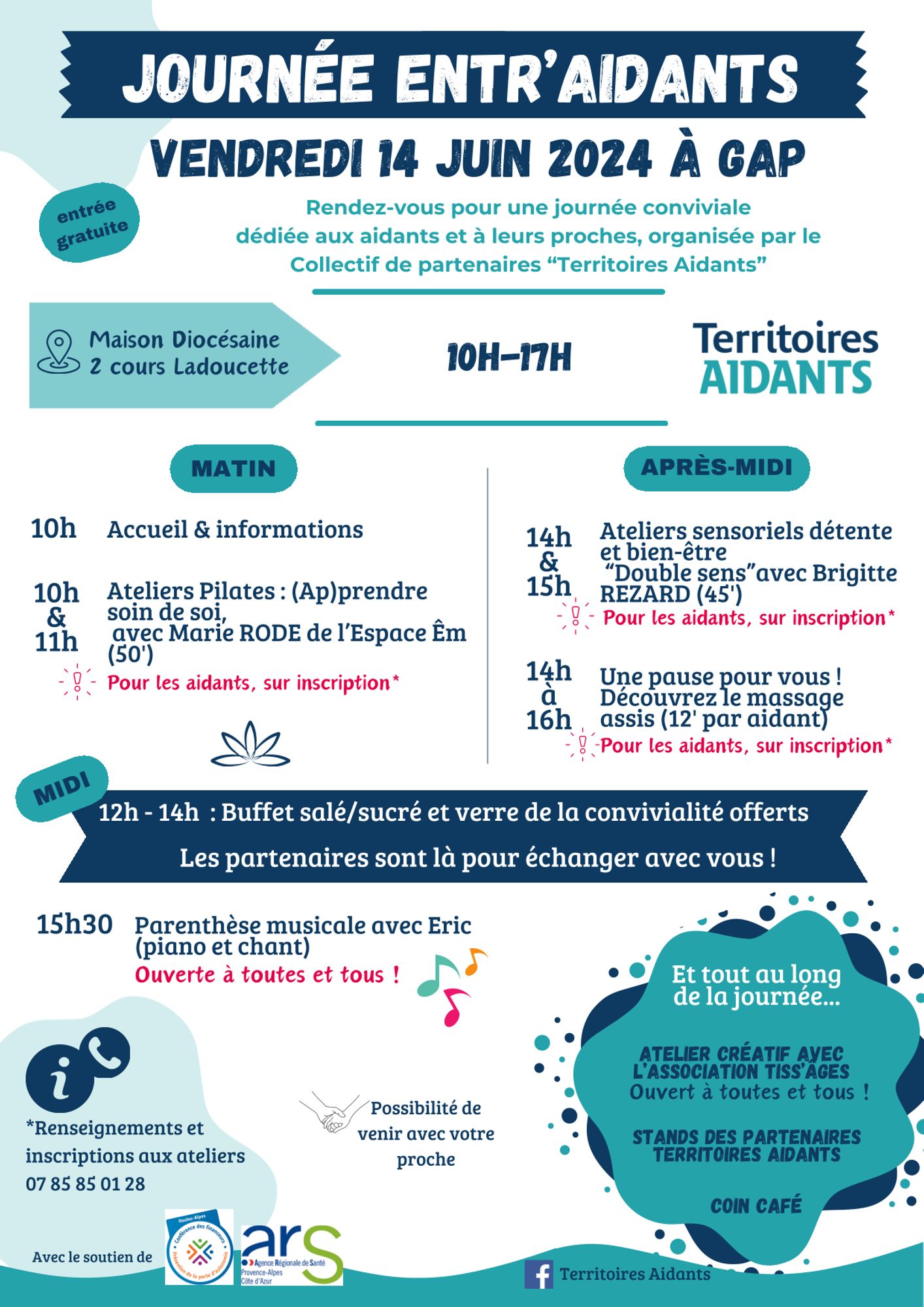Au programme : des ateliers bien-être, un atelier créatif, des stands d'informations, des espaces pour rencontrer et échanger avec les partenaires du réseau Territoires Aidants...de la convivialité et du partage d'info !