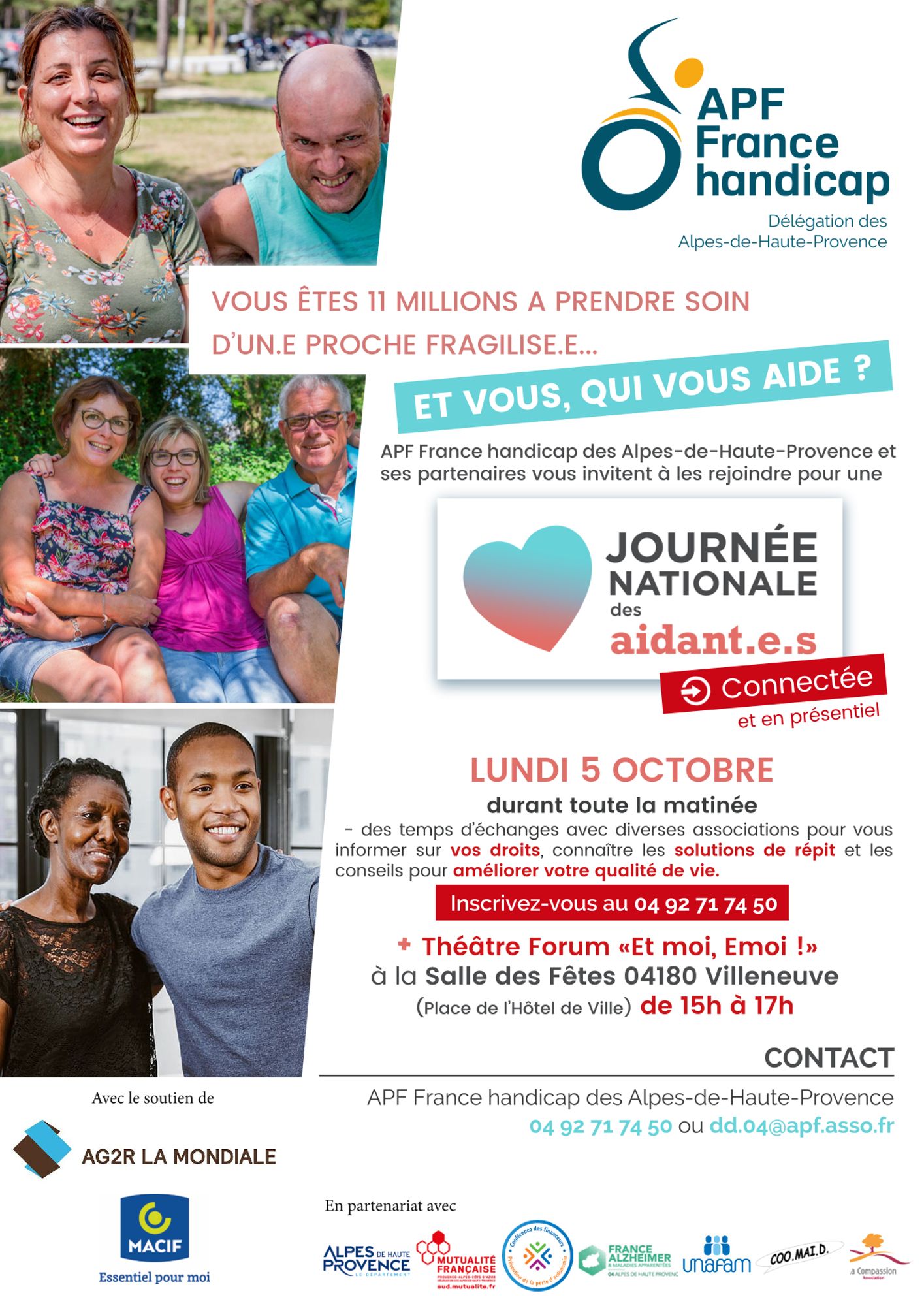 APF France handicap des Alpes-de-Haute-Provence et ses partenaires vous invitent à les rejoindre pour la journée nationale des Aidants qui se déroulera le lundi 5 octobre 2020.