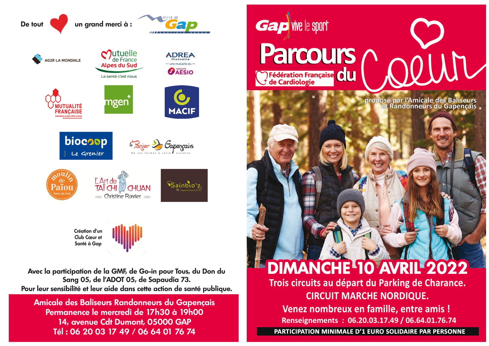 Soutenu par la Fédération Française de Cardiologie, l'Amicale des Baliseurs Randonneurs du Gapençais organise les parcours du coeur le 10 avril 2022.