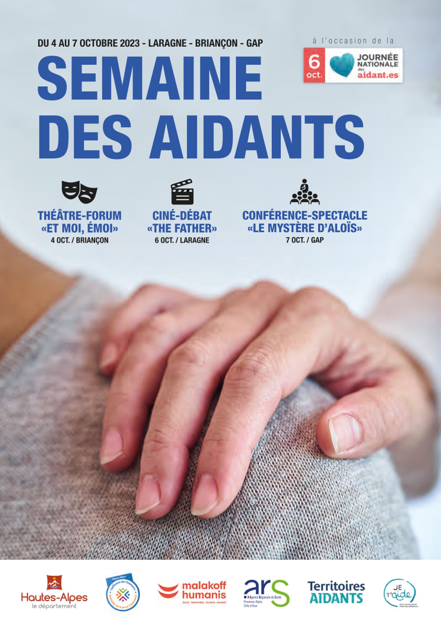 Vous pourrez également retrouver le Collectif Territoires Aidants sur différents stands de sensibilisation et d’information : marchés de Laragne (28/09) et de Gap (30/09), au Check-up santé Seniors à Embrun (28/09), à la Caisse Commune de Sécurité Sociale à Gap (du 2 au 6/10 en matinée), au Check-up santé Seniors à Gap (5/10), à la Foire de la Saint Luc à Guillestre (16/10), à la Semaine de l’information sur la santé mentale à Veynes (19/10)...