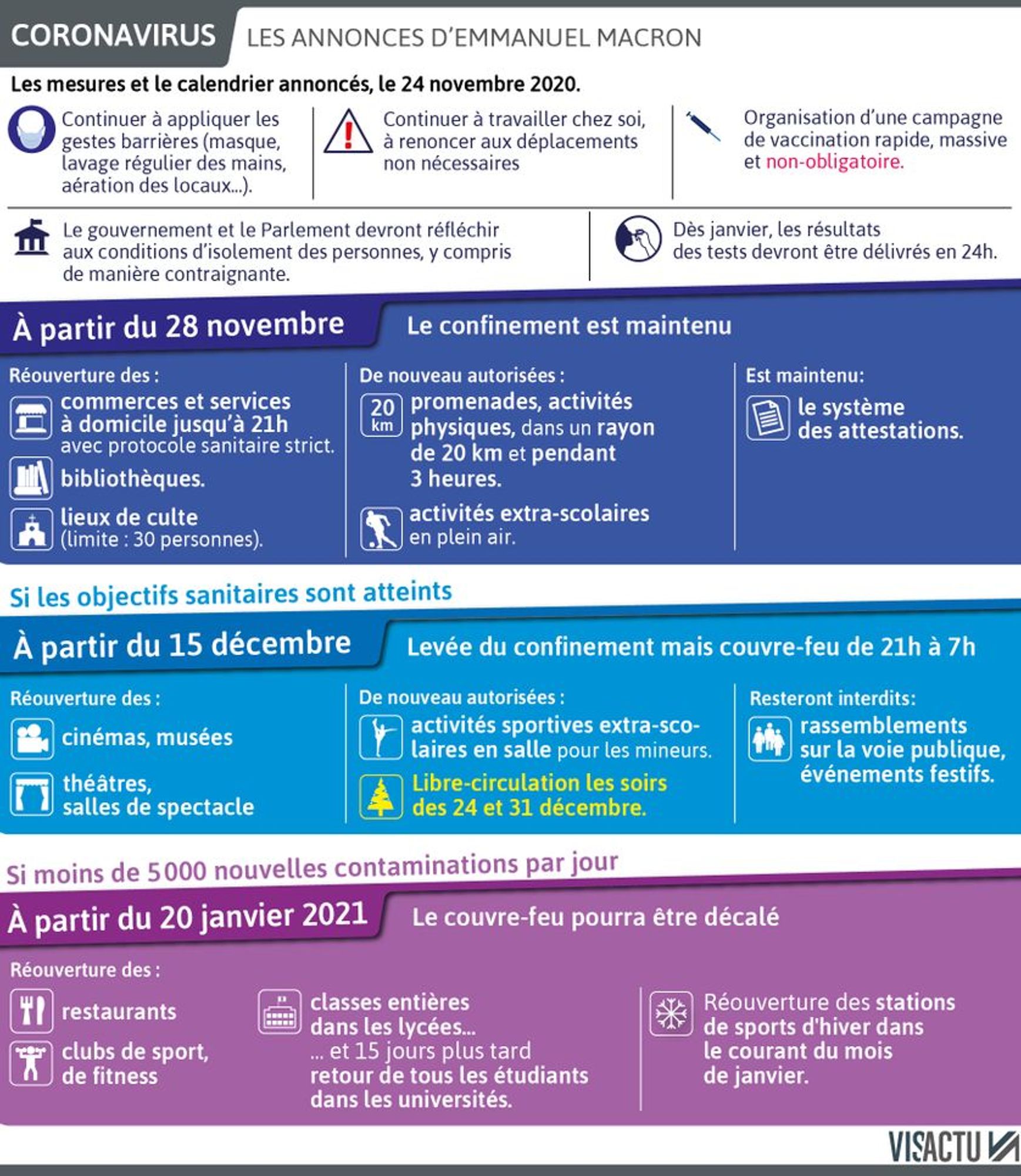À compter du 27 novembre 2020 à minuit, il est possible de se déplacer à condition de se munir d'une attestation pour :