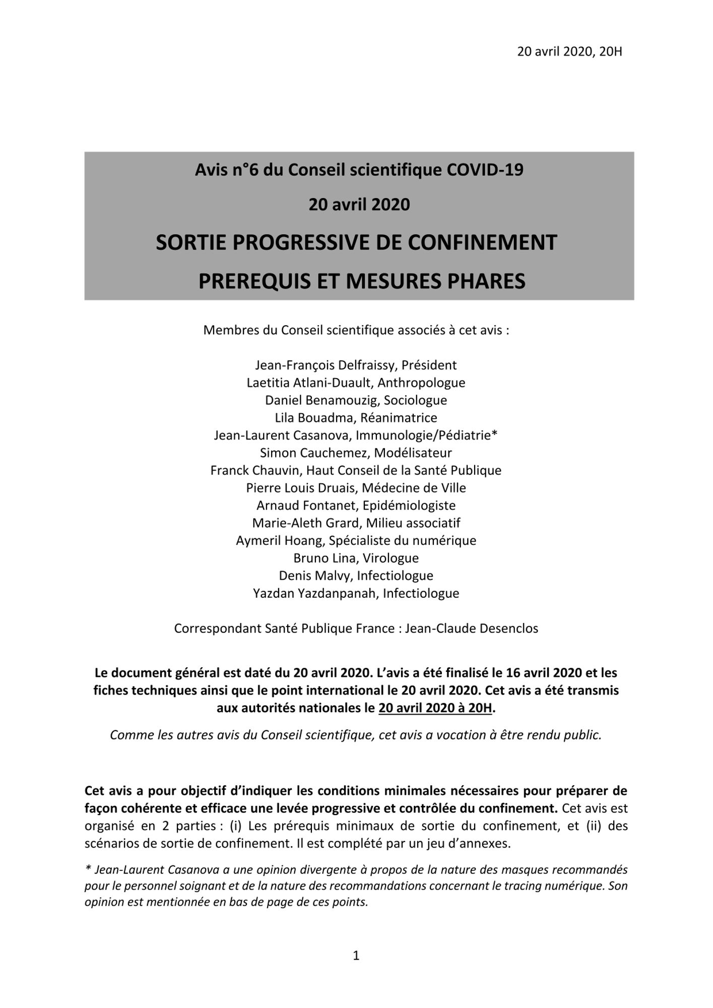 Conseil Scientifique : Avis du 20 Avril + Note du 24 Avril