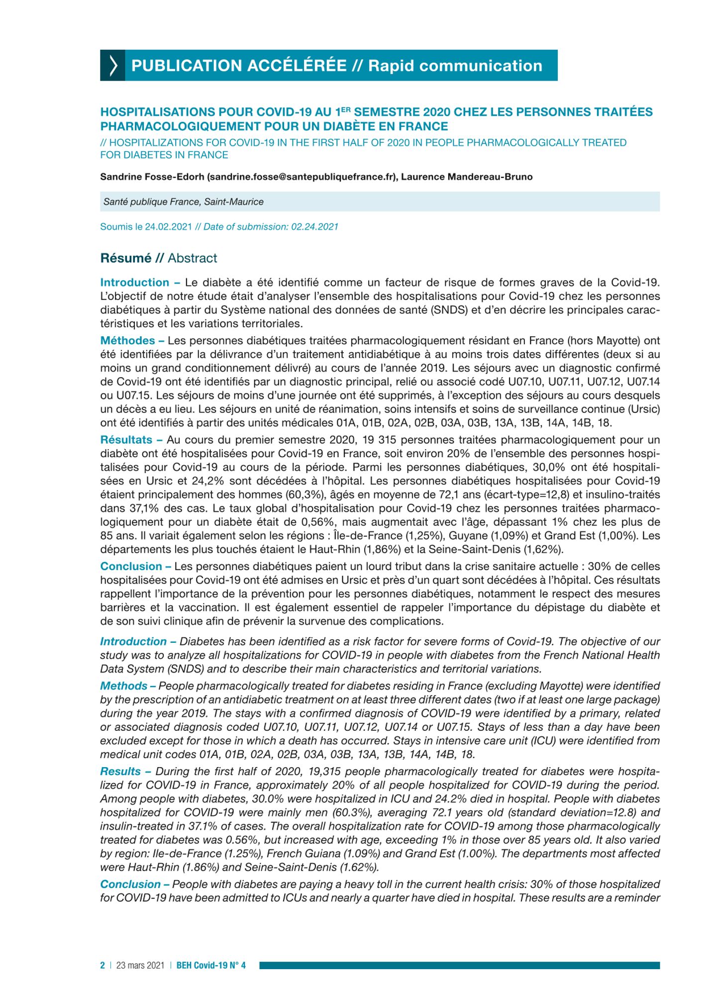 Publication accélérée - Santé Publique France