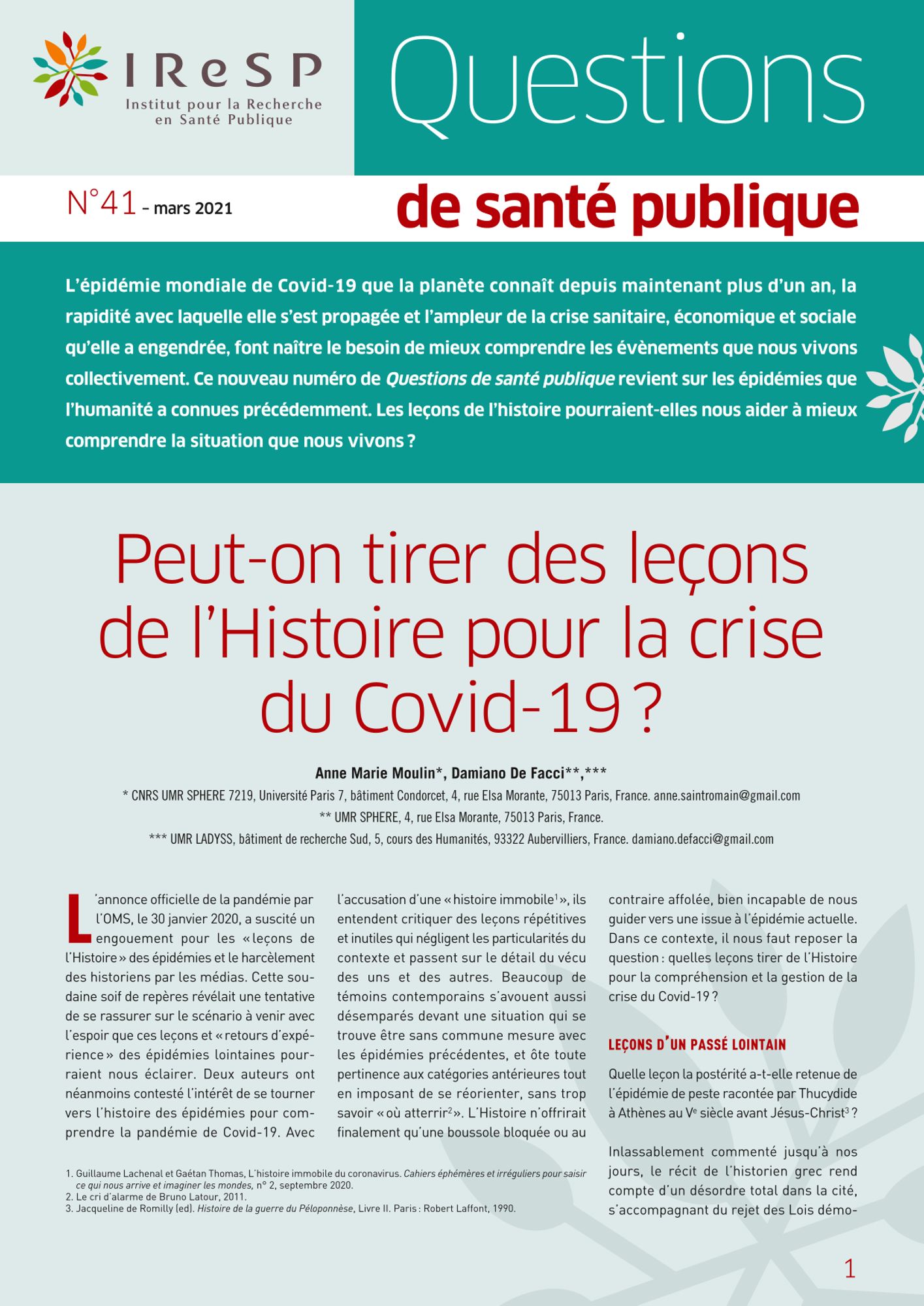 Questions de santé publique N°41