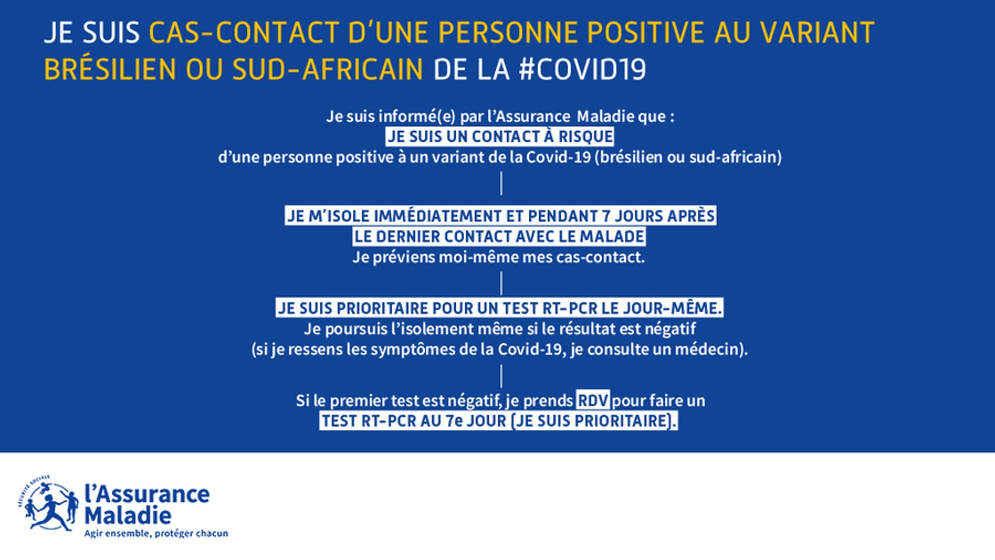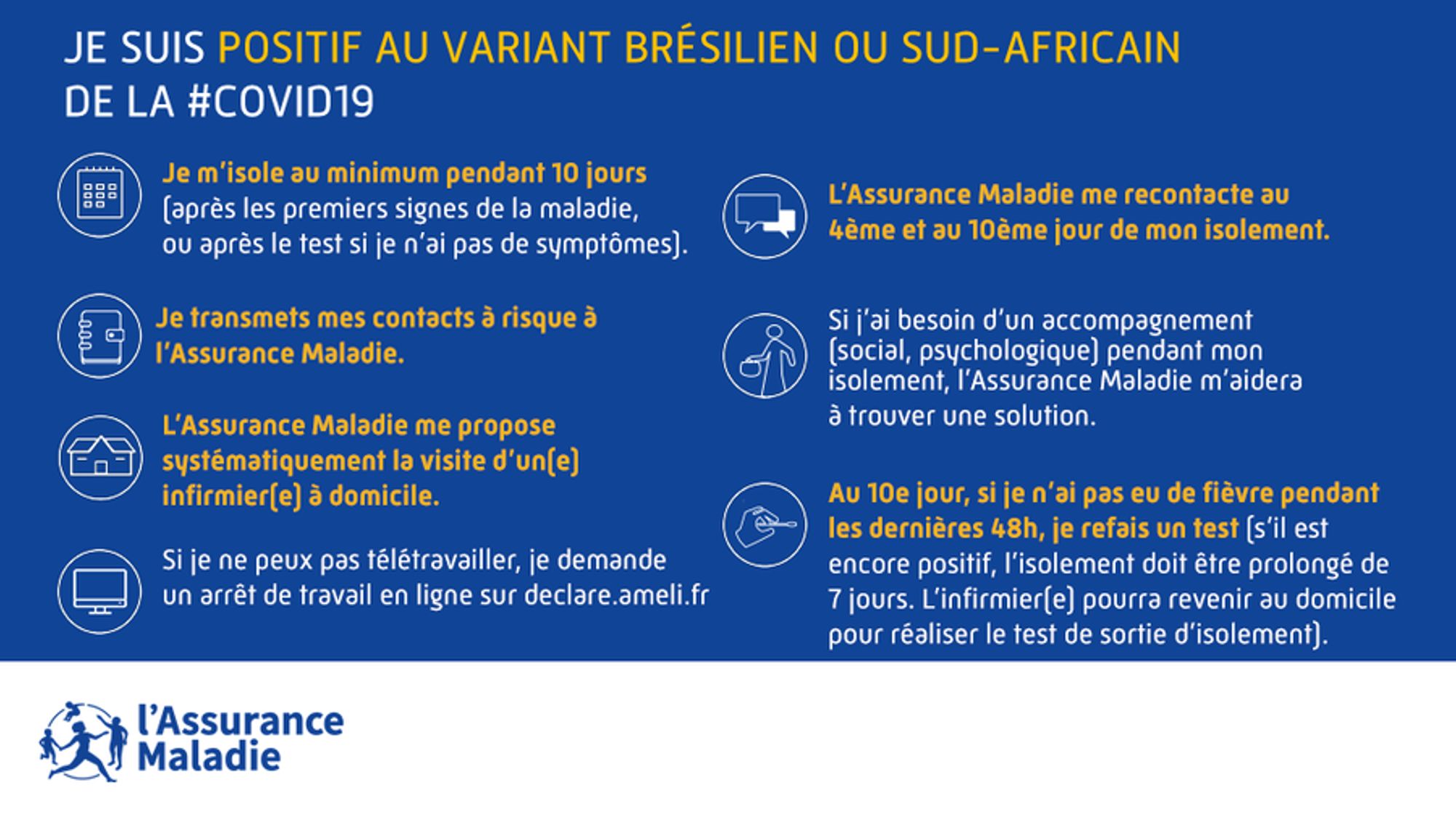 Pour améliorer la lutte contre les nouveau variant sud-africain et brésilien, l'Assurance Maladie rappelle la conduite à tenir.