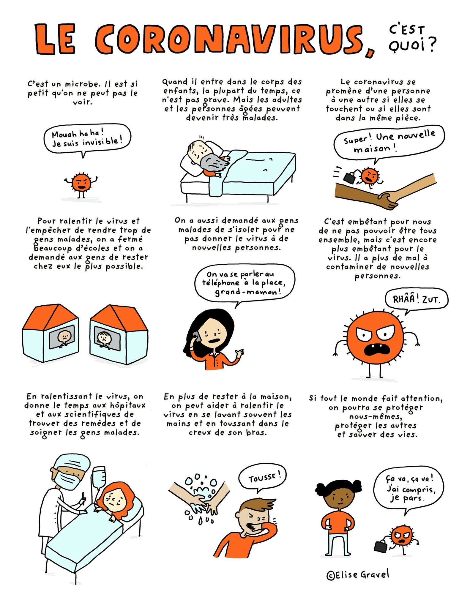 Une affiche à imprimer pour parler avec les enfants du coronavirus, développée par Elise Gravel, Auteure - Illustratrice.