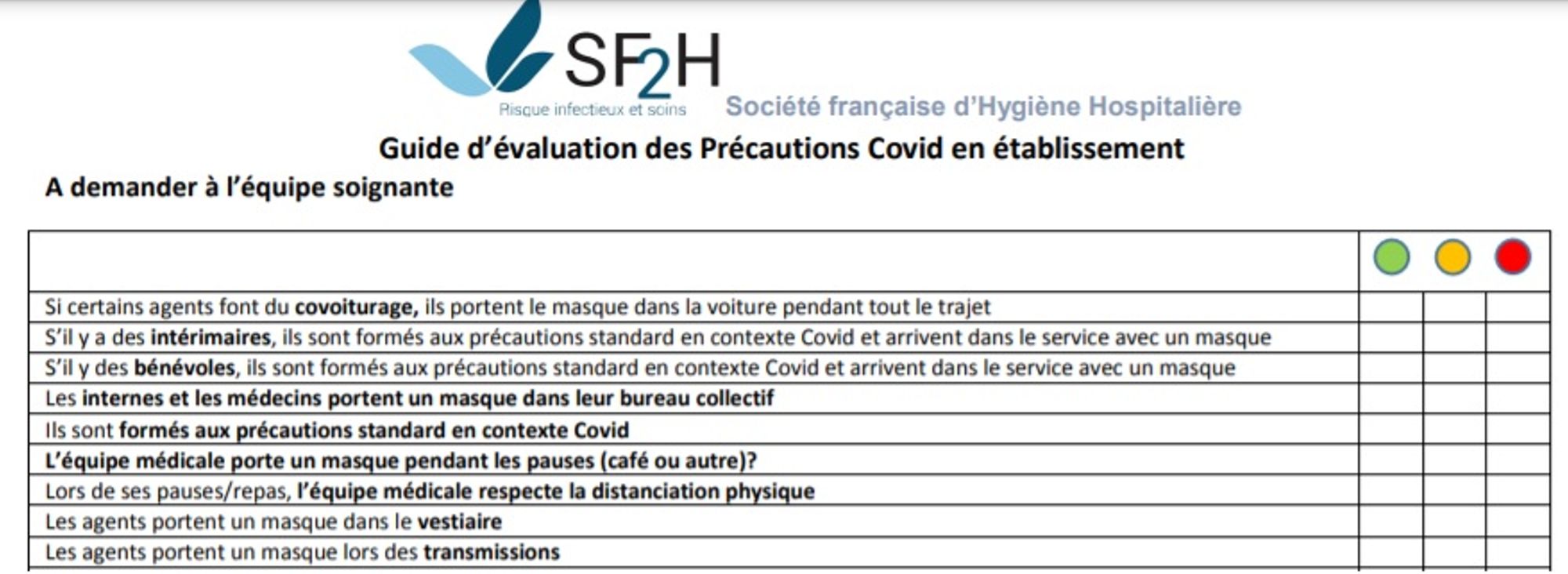 Guide SF2H d’évaluation des précautions COVID-19