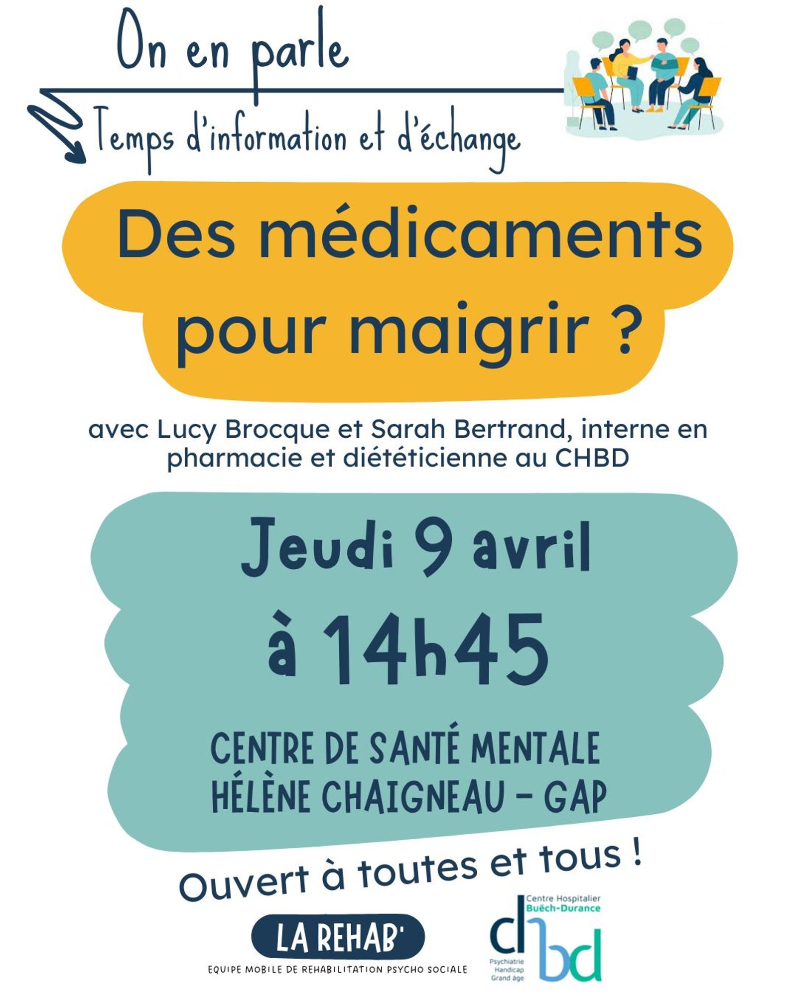 Le jeudi 9 avril, temps d'échange et d'information sur le thème "Des médicaments pour maigrir ?"