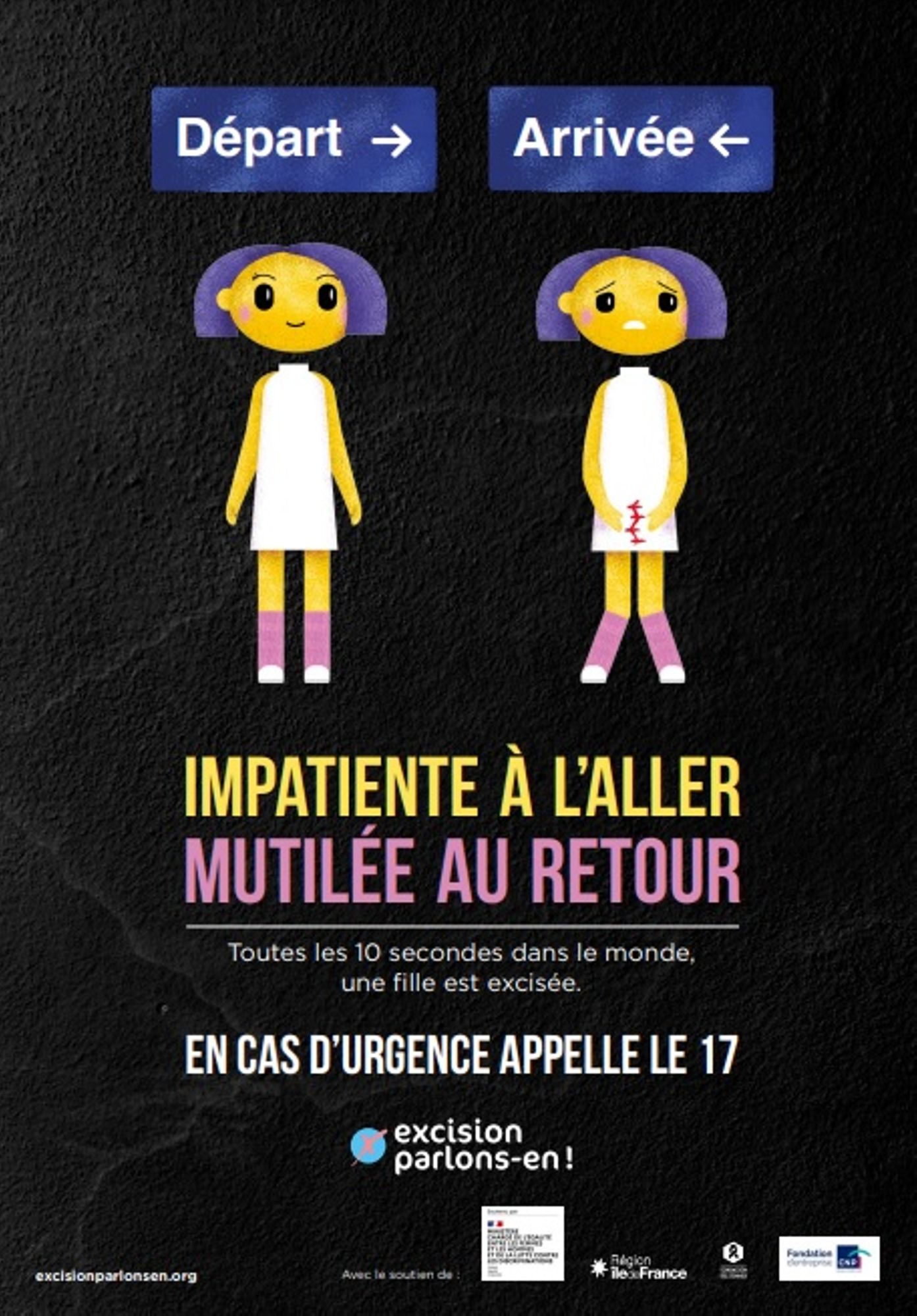 Cette campagne, « Impatiente à l’aller, mutilée au retour », portée par l'association Excision Parlons-en !, a pour but de prévenir les risques d'excision et sensibiliser les jeunes filles à risque, leur entourage et les professionnels, avant les départs en vacances scolaires.