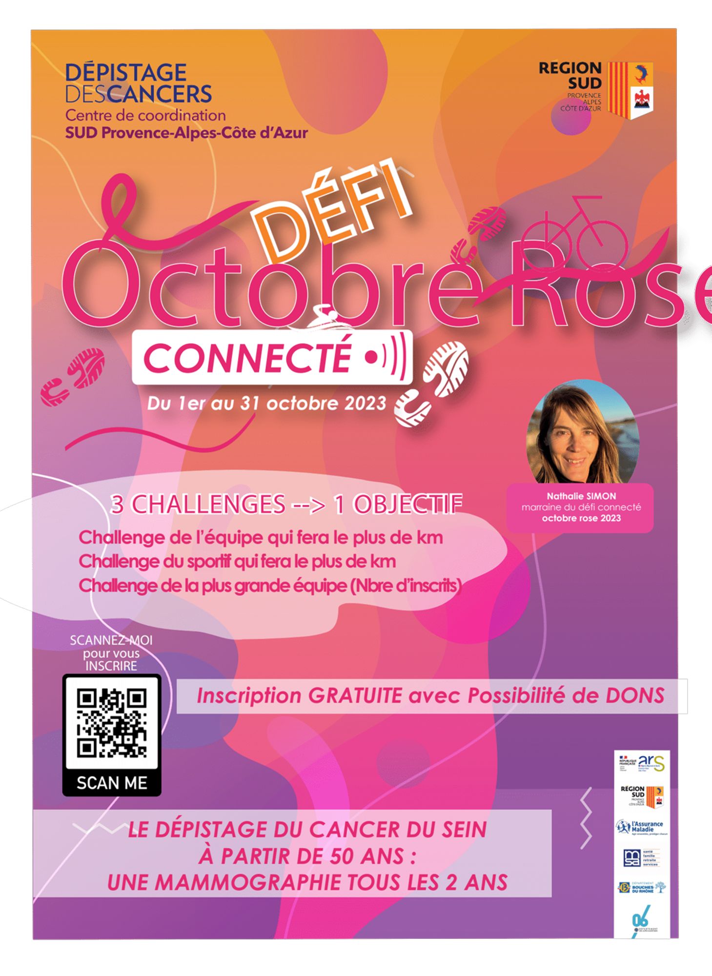 Pour la troisième fois à l'occasion "d'Octobre Rose 2023", l'association organise un Défi Octobre Rose Connecté, avec le soutien du Conseil Régional Sud Provence-Alpes-Côte d'Azur.