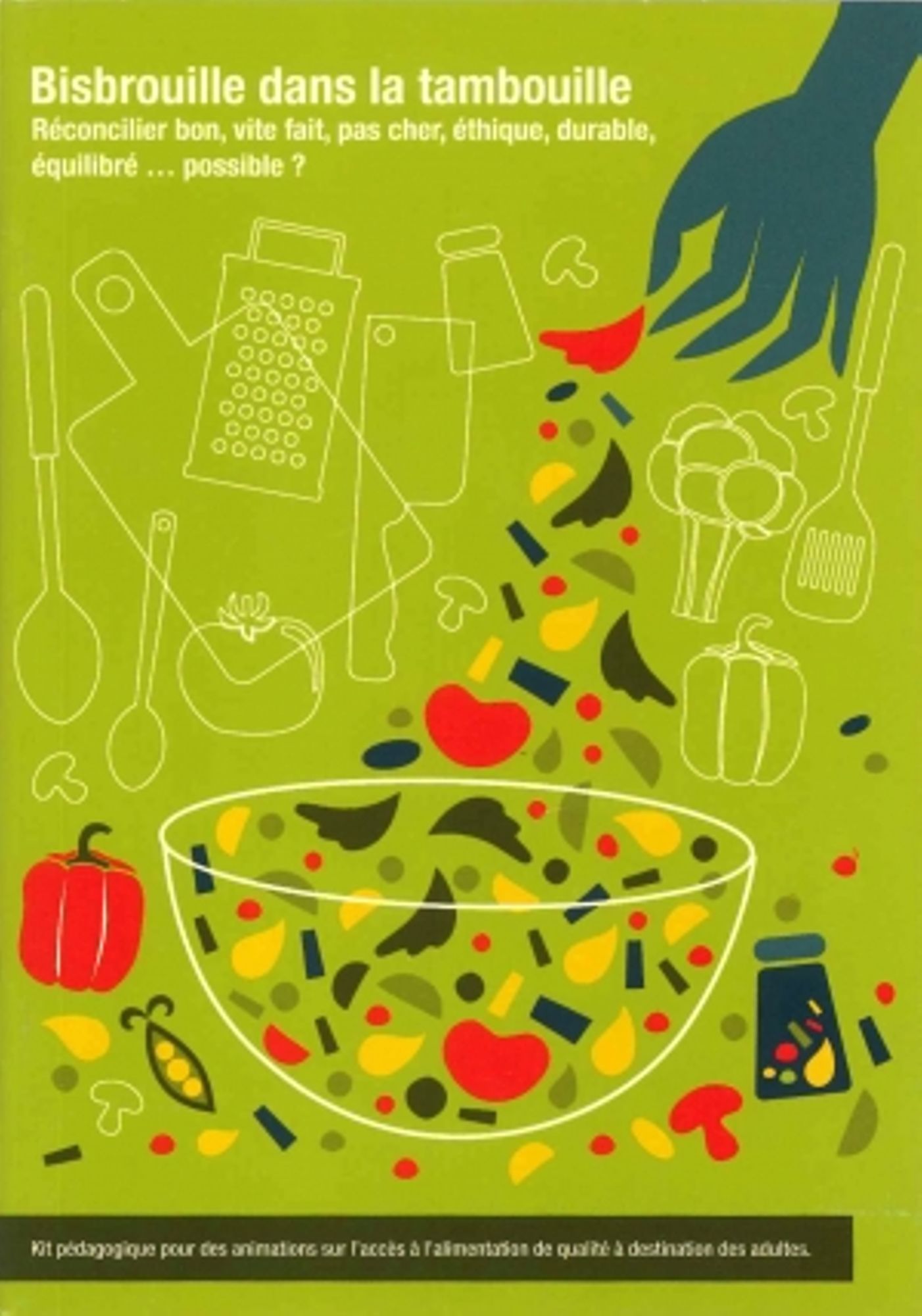 Cet outil réalisé par l'Union nationale des mutualités socialistes (à Bruxelles) est destiné à travailler les questions de l’alimentation avec un public adulte, avec des supports d’animation accessibles à un public peu alphabétisé. Il a pour objectifs de faire réfléchir aux déterminants (freins et leviers) de l’accès à une alimentation de qualité, d'envisager les possibles et les limites au changement, d'expérimenter de nouvelles attitudes, de déculpabiliser par rapport aux messages normatifs de santé publique, et de débattre avec les participants de leurs moyens d’action. L'outil est construit autour d'un guide qui propose des repères théoriques et 6 modules pour mettre en place un parcours d'animation complet. Ce parcours débute par une interrogation sur les habitudes individuelles de courses alimentaires (module 1), se poursuit par l’évocation des difficultés à manger en respectant les nombreux critères de qualité (module 2), décode les dérives publicitaires (module 3), déchiffre les étiquettes alimentaires (module 4), repère les freins au changement (module 5) et se termine par une séance conviviale de fabrication/dégustation de soupe de saison (module 6).