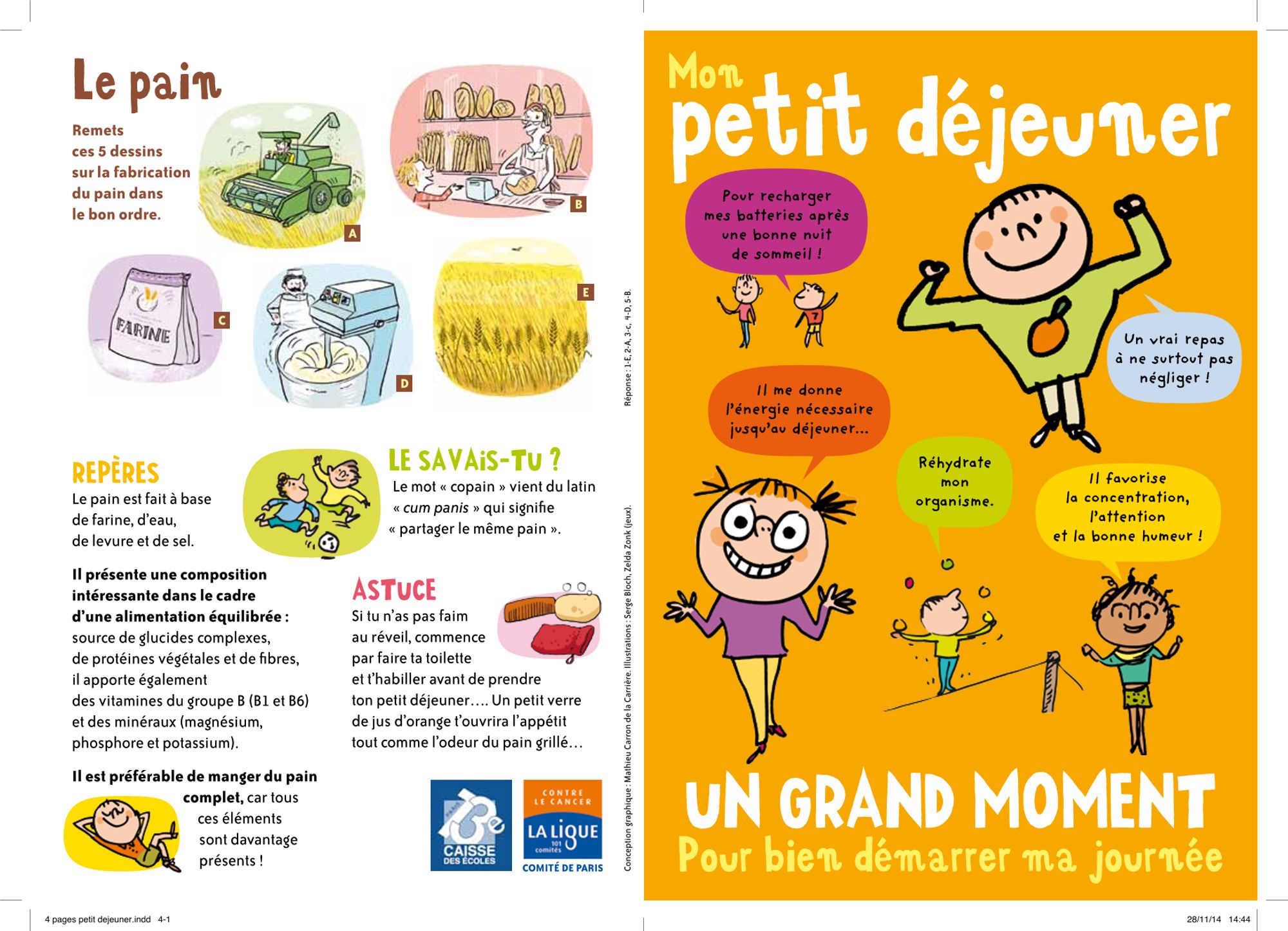 Cette exposition est imprimée à partir d'une plaquette sur le petit déjeuner. Ce format permet ainsi de travailler sur les recommandations alimentaires du petit déjeuner avec un groupe.