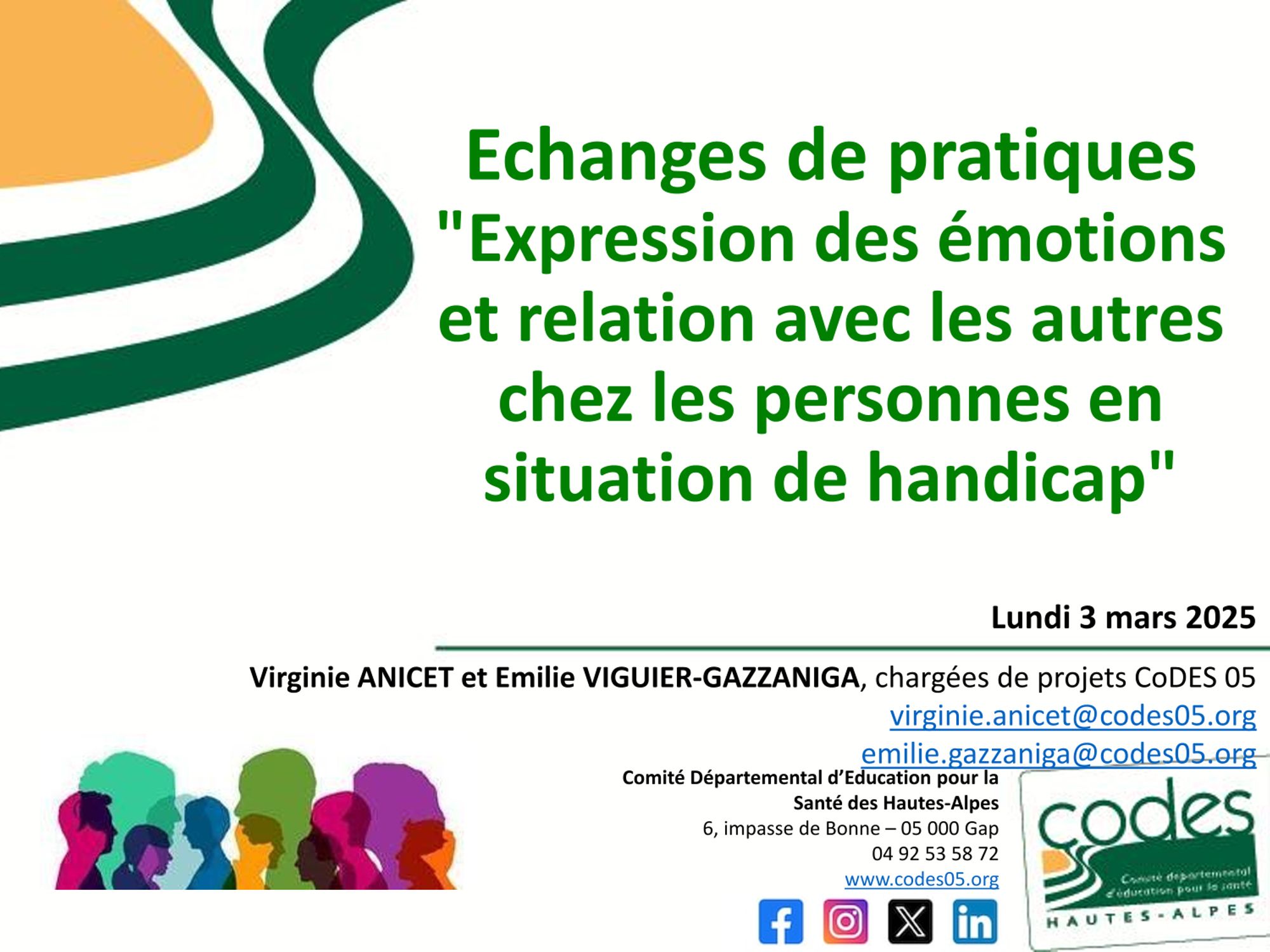 Echanges de pratique : “Expression des émotions et relations avec les autres chez les personnes en situation de handicap”