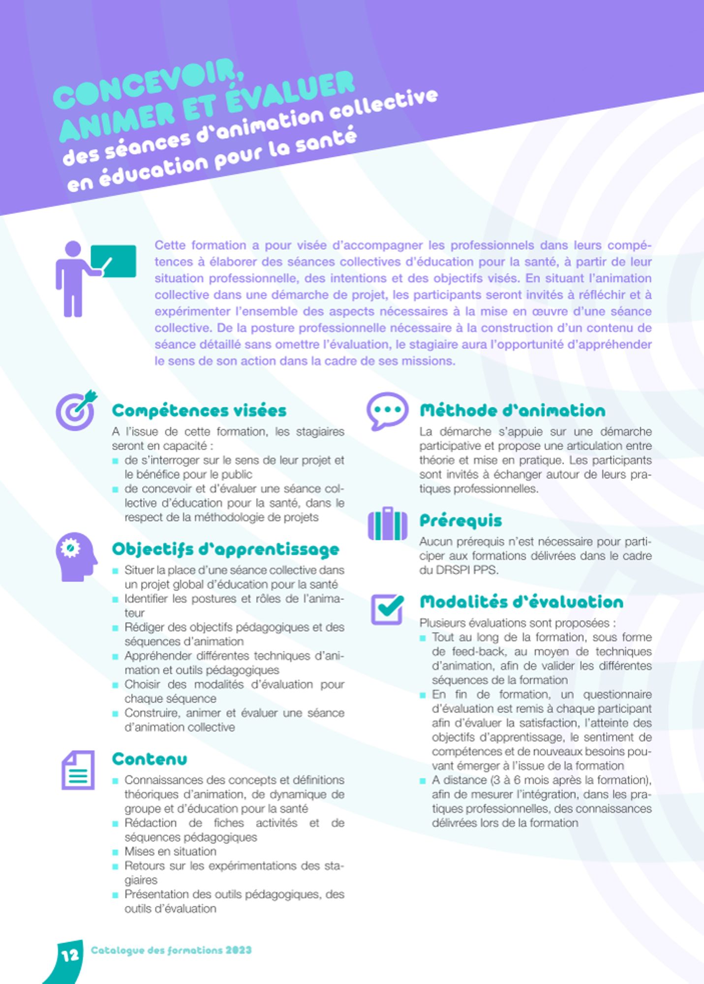 Concevoir, animer, et évaluer des séances d'animation collective 2023