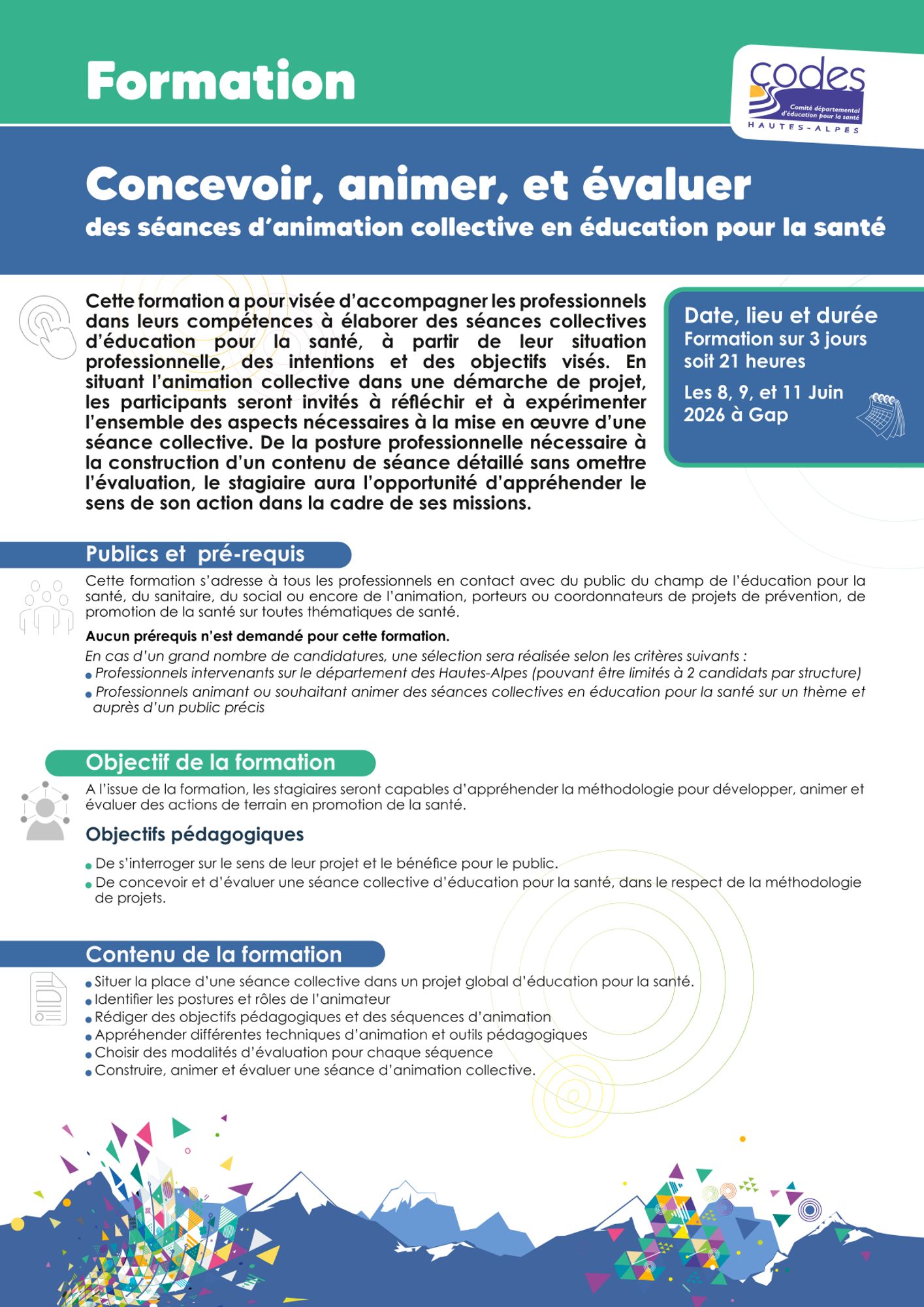 Pour une demande de formation en interne, nous contacter : codes05@codes05.org