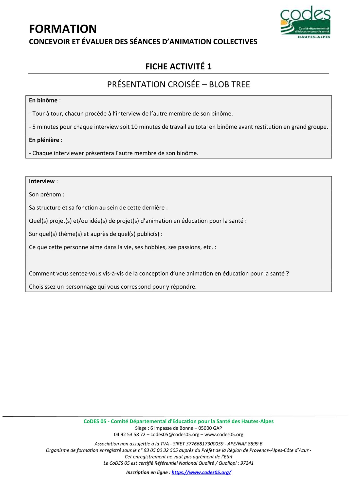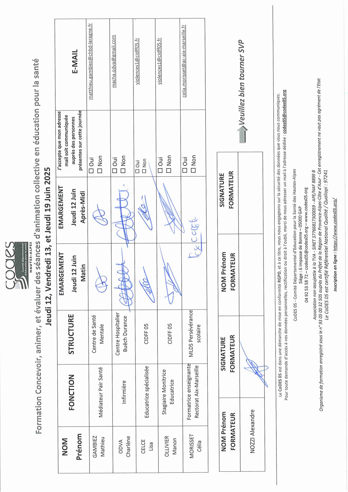 Concevoir, animer, et évaluer des séances d'animation collective en éducation pour la santé Juin 2025 Ressources pédagogiques : Formation Juin 2025 Powerpoint Formation 3J (24.6 Mo) Emargement / Coordonnées (2.2 Mo) Photos productions groupe 3J (40.0 Mo) Catalogue Icebreakers (12.0 Mo) Réunio'Kit Fiches activités 3J (1.3 Mo)