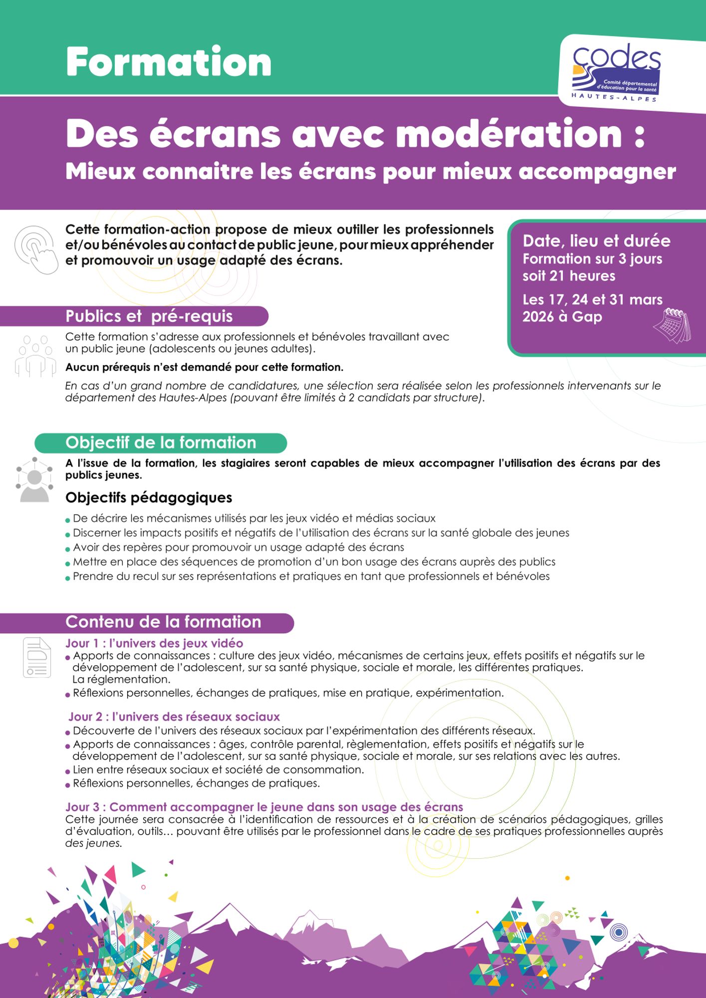 Pour une demande de formation en interne, nous contacter : codes05@codes05.org