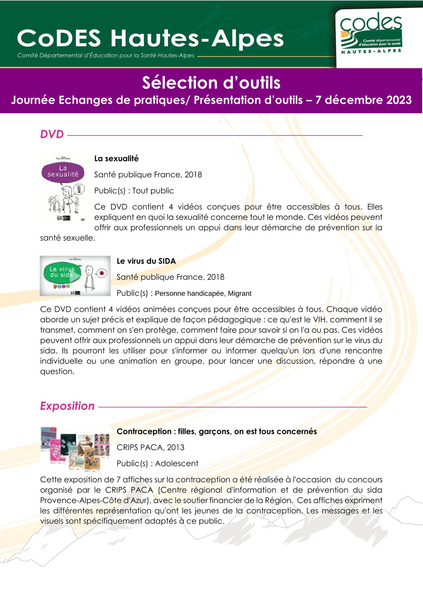 Echanges de pratiques - Atelier de présentation d'outils - Vie affective, relationnelle et sexuelle : Jeudi 7 Décembre 2023 Ressources pédagogiques Powerpoint Journée (10.1 Mo) Sélection outils VAES Décembre 2023 (1.5 Mo) Production Groupe 07122023 (16.8 Mo)