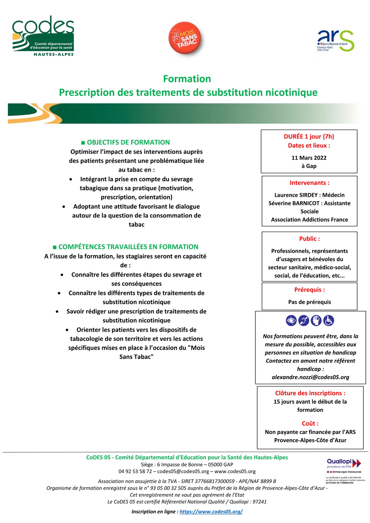 Cette formation s'inscrit dans le cadre de la 6ème édition du Moi(s) Sans Tabac 2021.