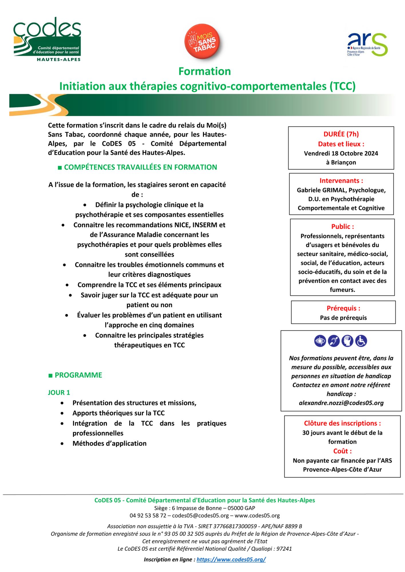 Cette formation s'inscrit dans le cadre de la 9ème édition du Moi(s) Sans Tabac 2024.