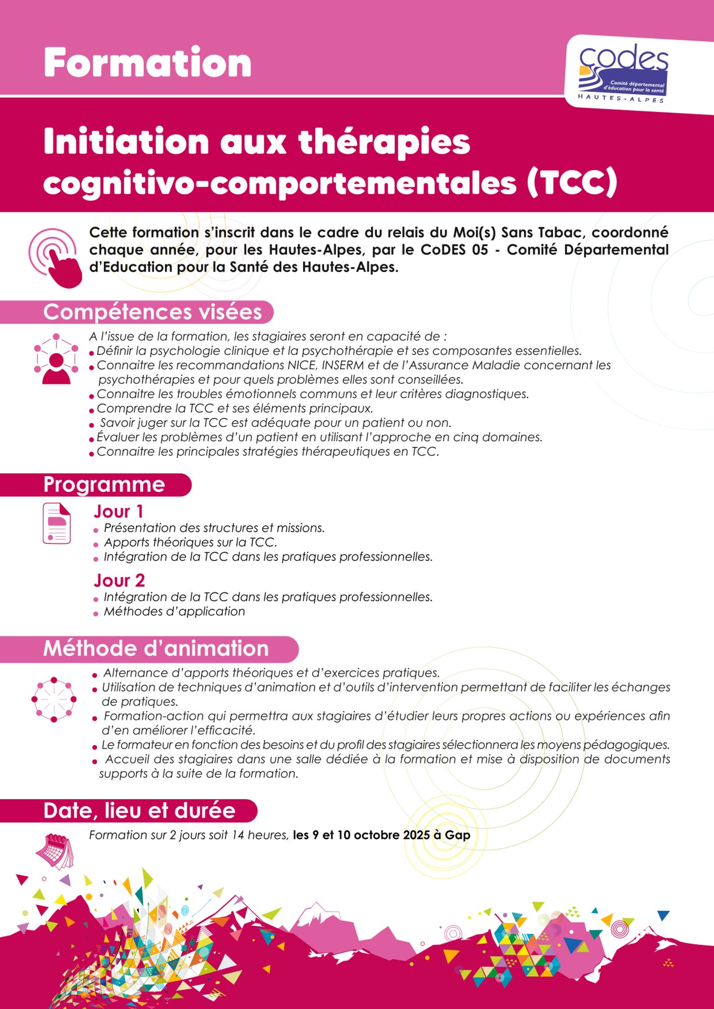 Cette formation s'inscrit dans le cadre du relais du Moi(s) Sans Tabac.