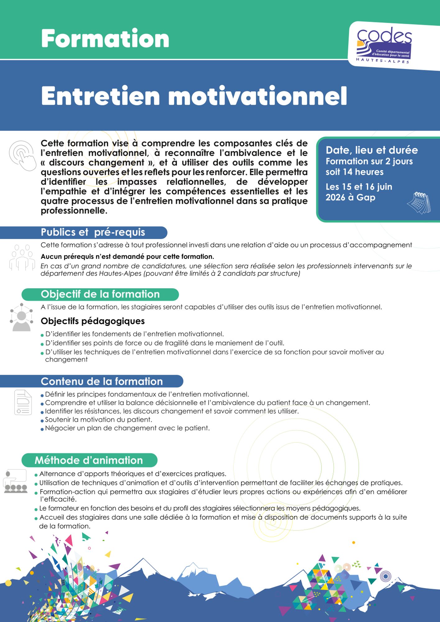 Pour une demande de formation en interne, nous contacter : codes05@codes05.org