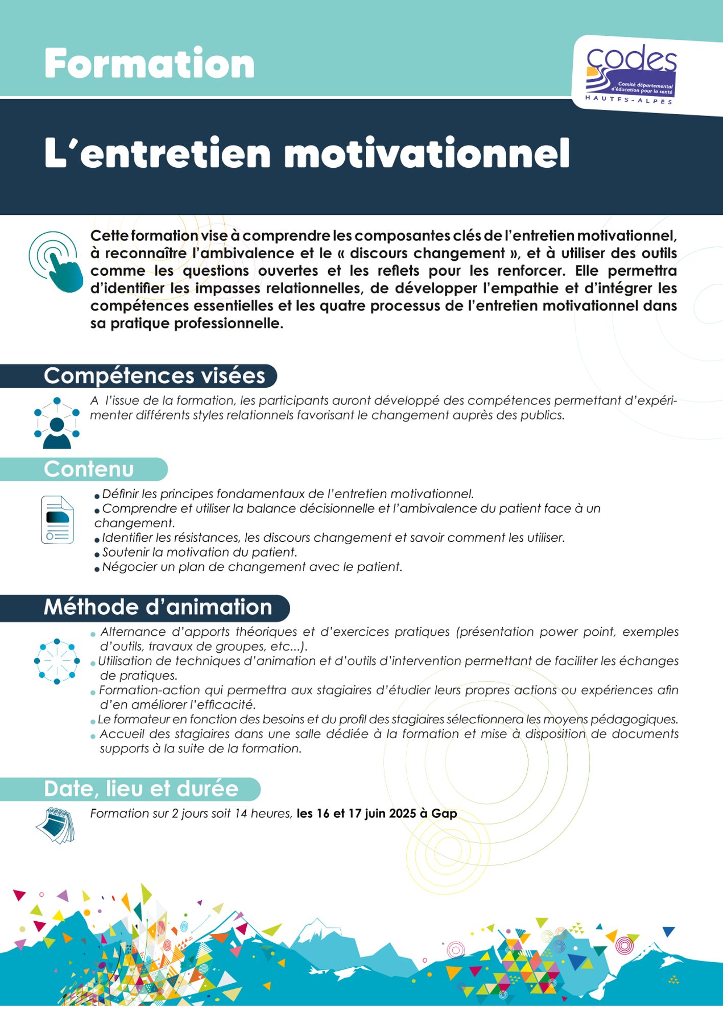 L’entretien motivationnel est un style de conversation collaboratif pour renforcer la motivation propre d’une personne et son engagement vers le changement.