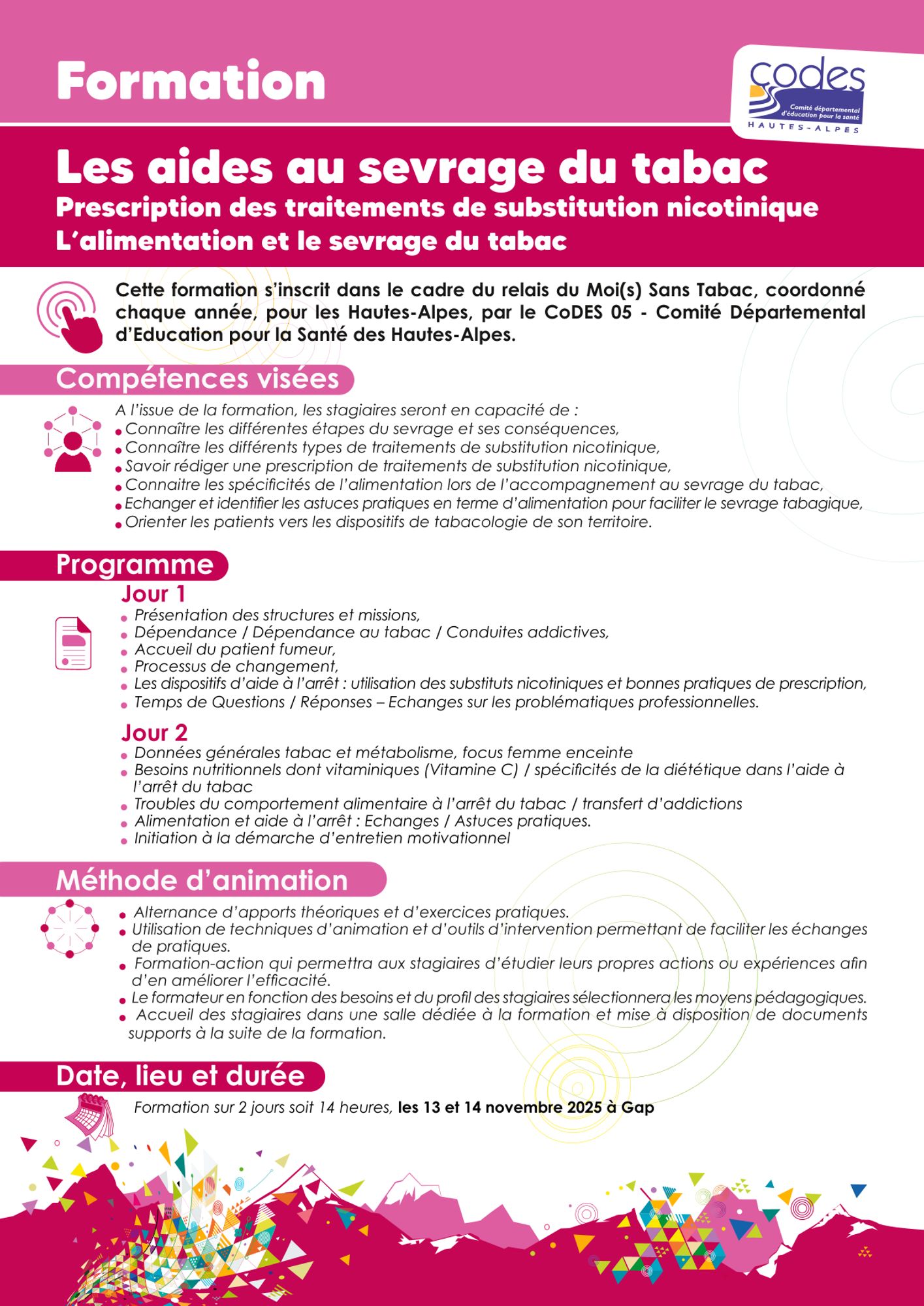 Cette formation s'inscrit dans le cadre du relais du Moi(s) Sans Tabac.