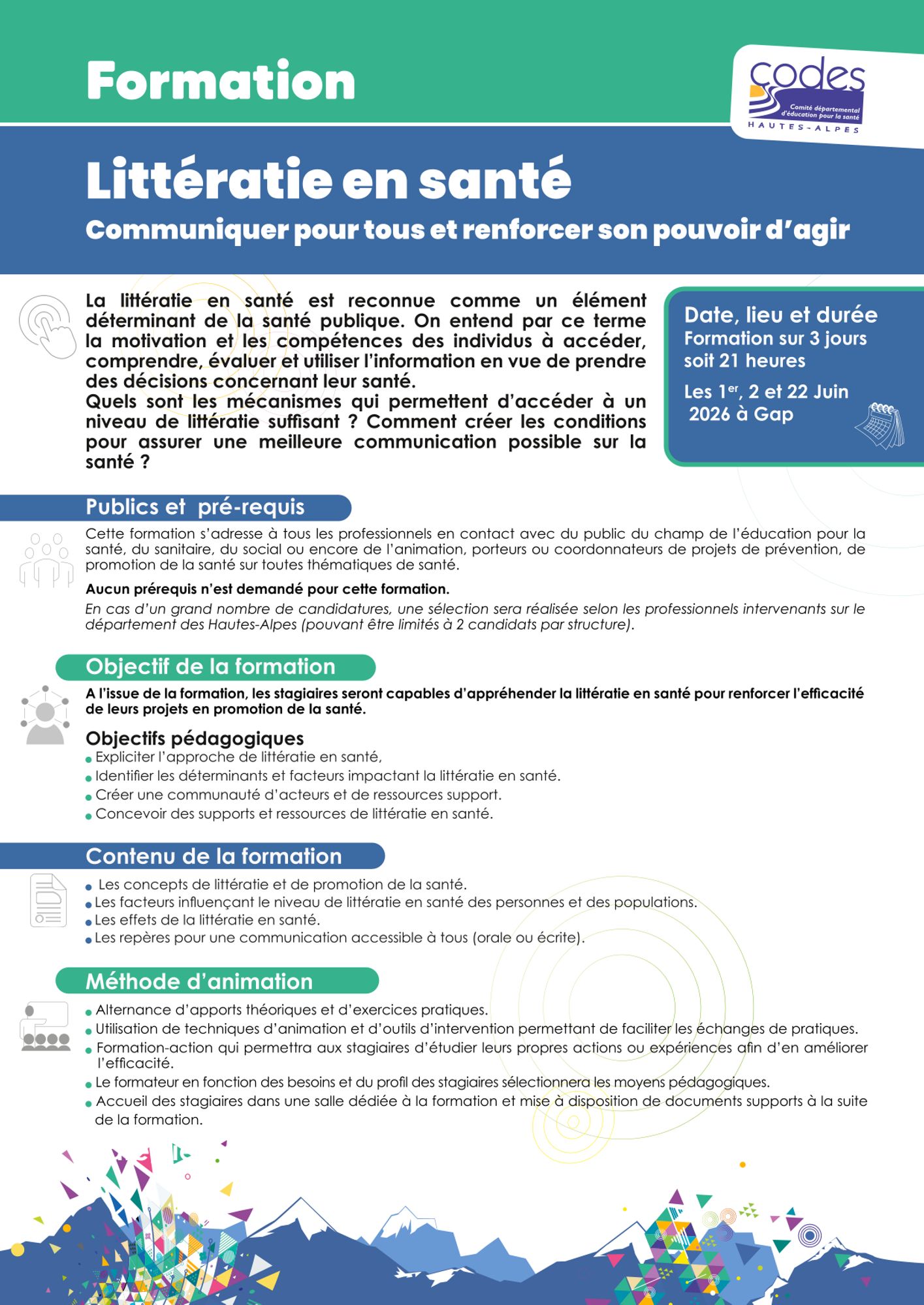 Pour une demande de formation en interne, nous contacter : codes05@codes05.org