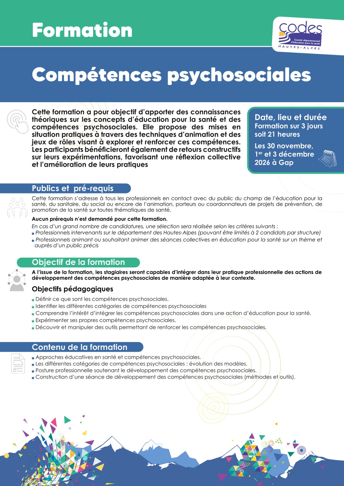 Pour une demande de formation en interne, nous contacter : codes05@codes05.org