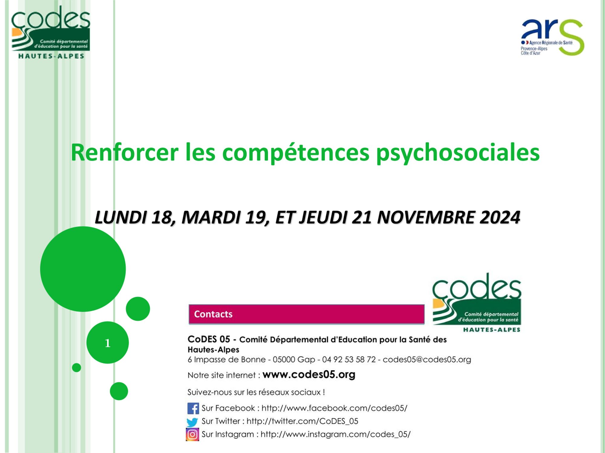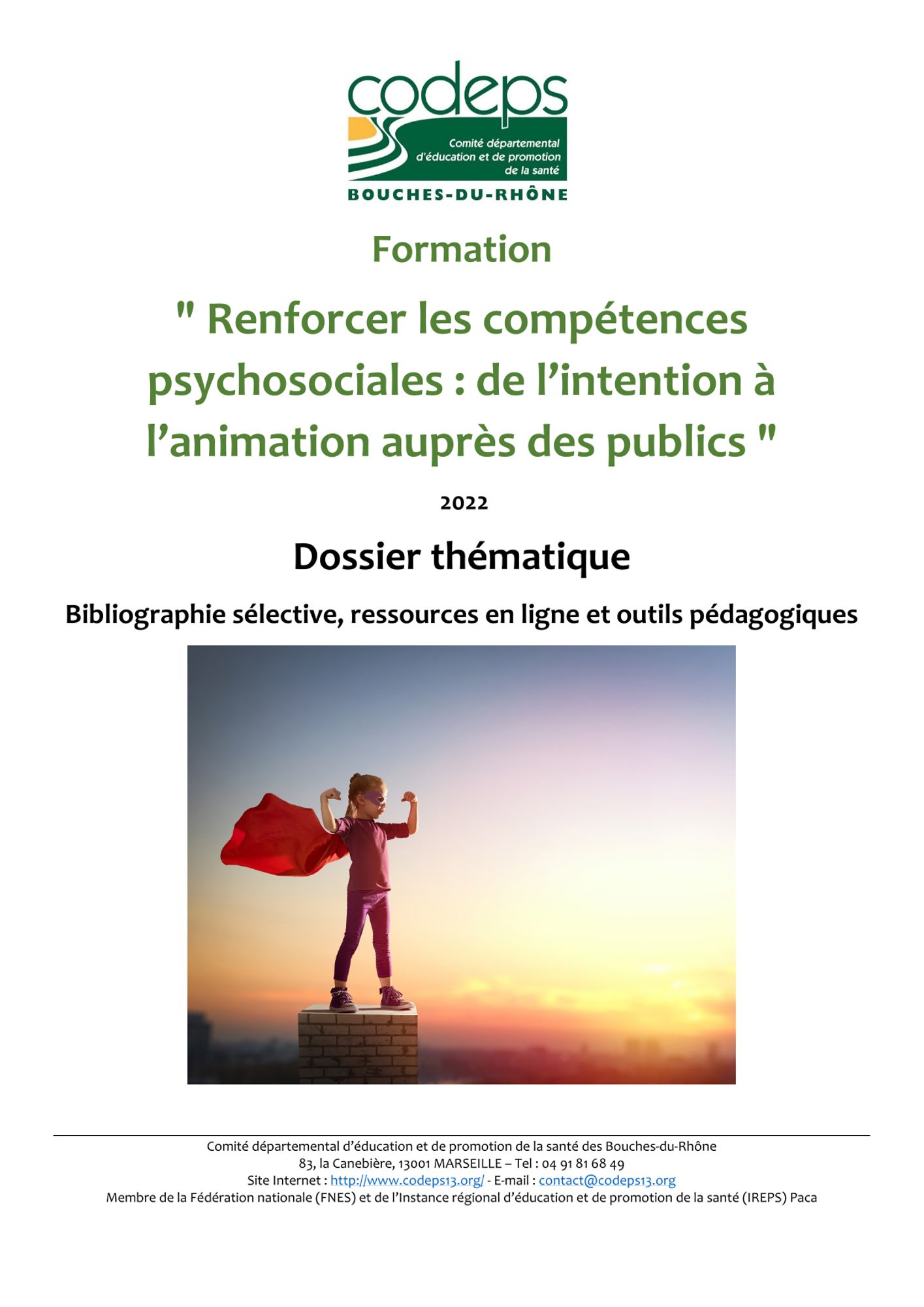 Renforcer les compétences psychosociales Novembre 2024 Ressources pédagogiques : Formation Novembre 2024 Powerpoint Formation (5.1 Mo) Fiches ateliers deux groupes (1.6 Mo) Fiche type construction atelier (557.2 Ko) Sélection bibliographique CPS (1.1 Mo) Photos productions groupe Formation CPS Novembre 2024 (860.6 Ko) Lien Cartable des CPS Lien COMETE CRES PACA