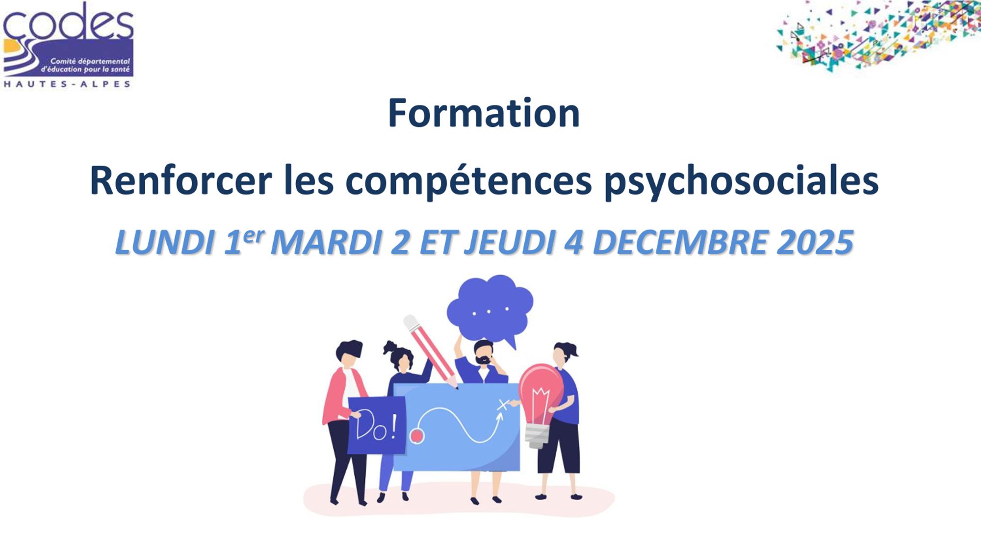 Renforcer les compétences psychosociales Décembre 2025 Ressources pédagogiques : Formation Décembre 2025 Présentation Powerpoint (5.5 Mo) Lien BIB BOP Lien Sirena Lien Scholavie Fiche activité type (169.7 Ko) Fiche activité groupe (730.5 Ko)