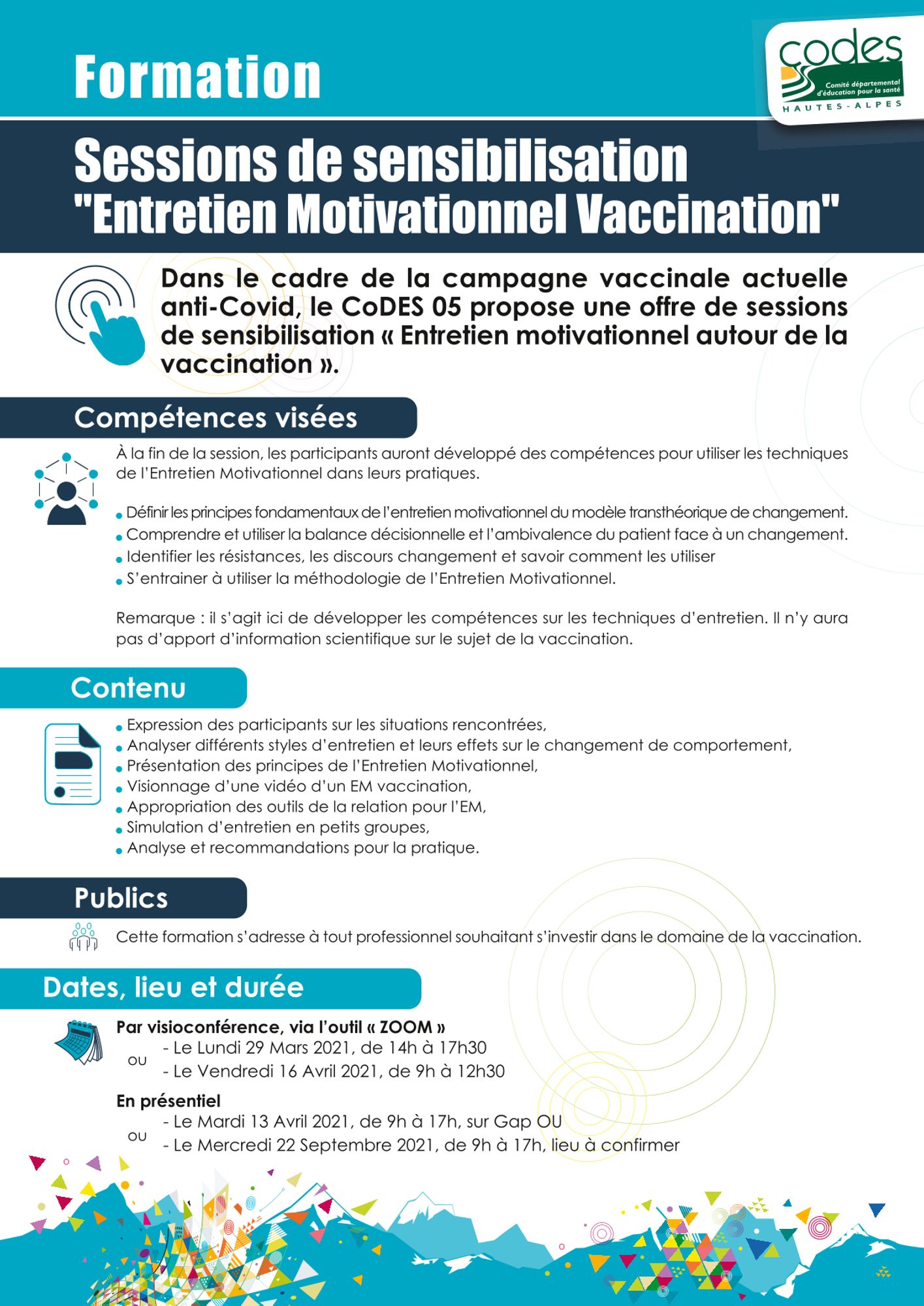 Dans le cadre des campagnes vaccinales, le CoDES 05 propose une offre de sessions de sensibilisation « Entretien motivationnel autour de la vaccination »