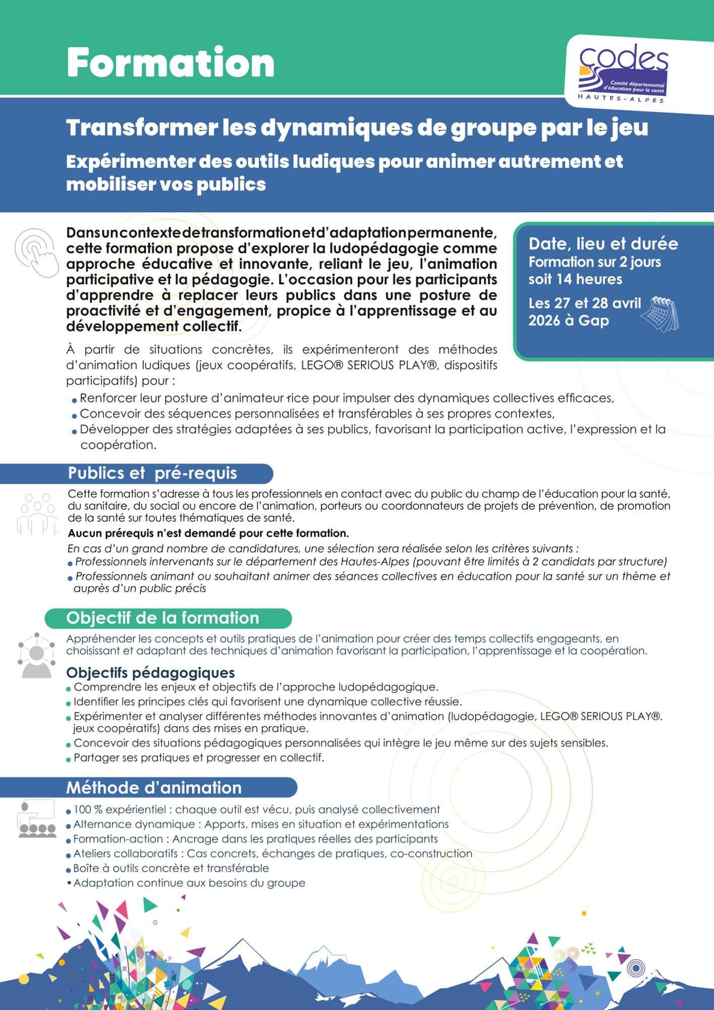 Pour une demande de formation en interne, nous contacter : codes05@codes05.org