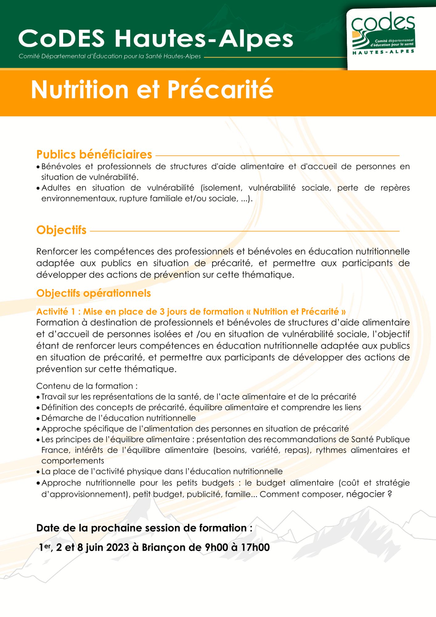Prochaine session de formation : Juin 2026 à Gap - (programme de formation à venir)